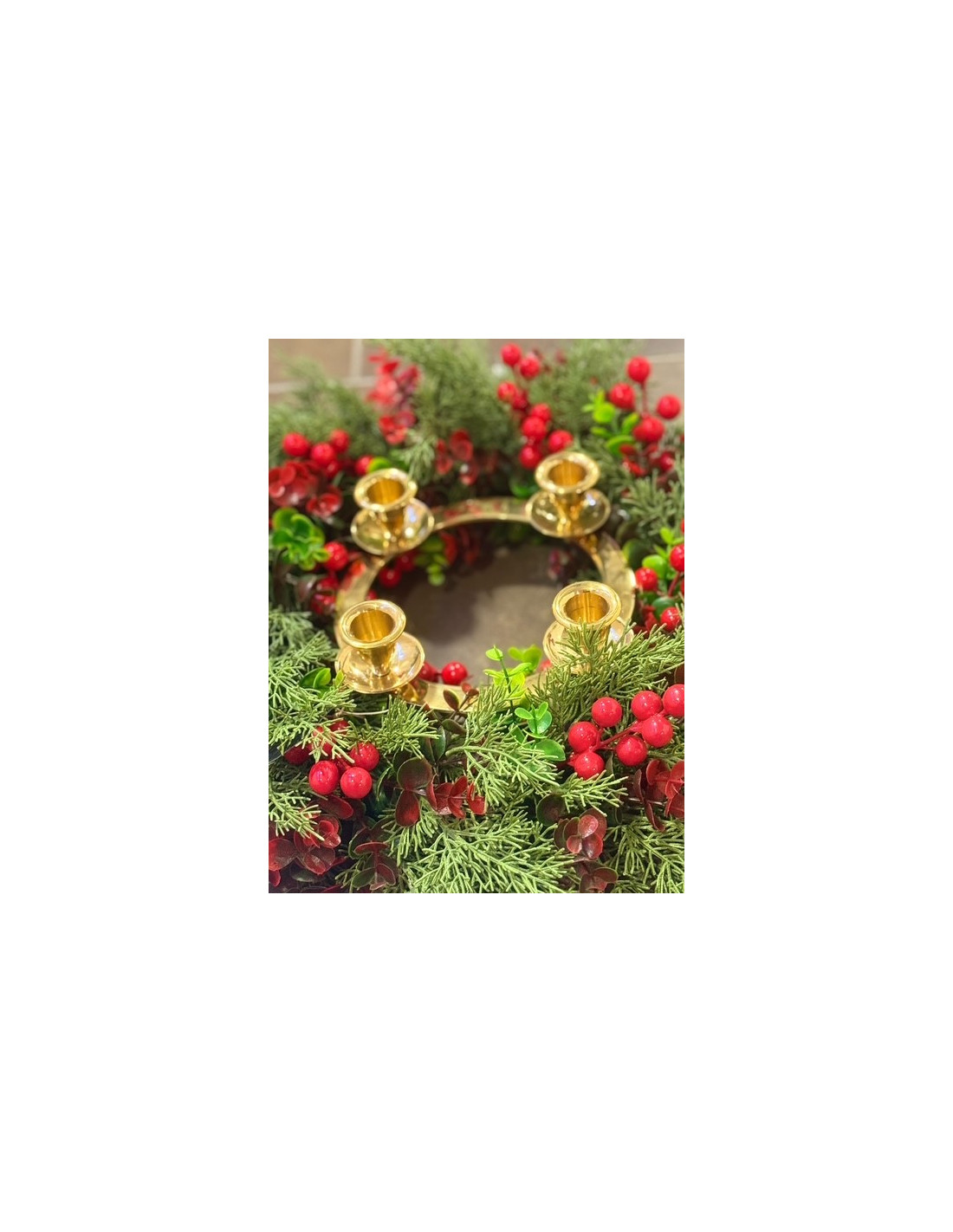 Handcrafted Christmas wreath with natural leaves, berries and gold dust – Ø 42.5 cm
