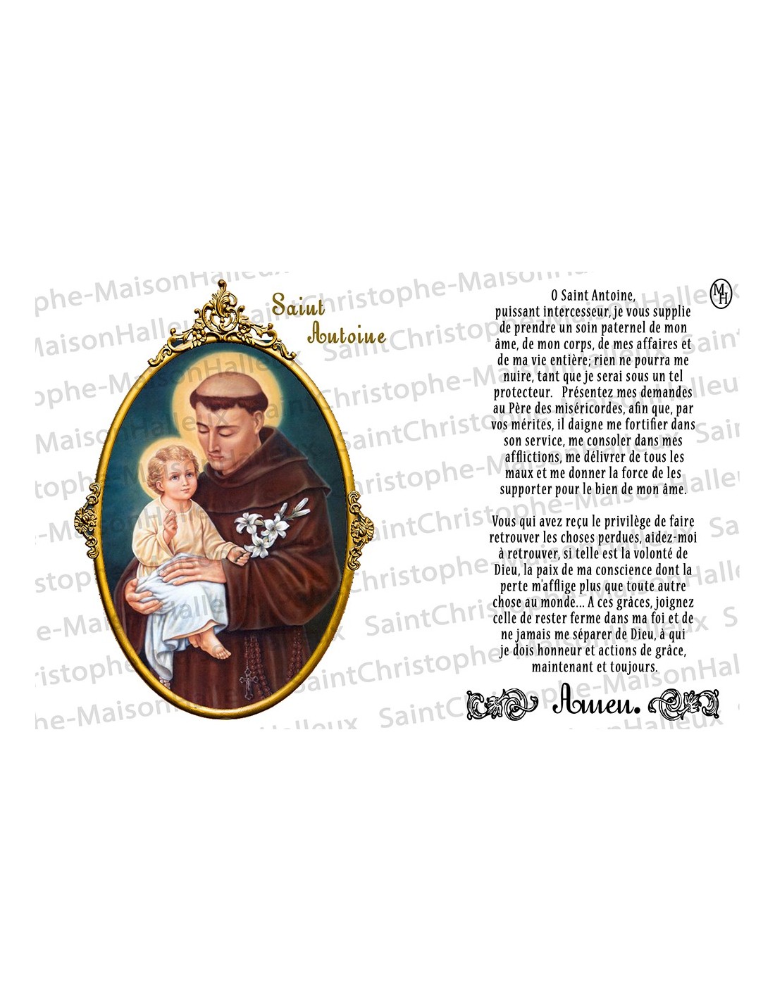 Cards - Medal cards Medal card to Saint Anthony - prayer 1102488-saint-antoine Languages French Italian German Dutch English (1 review) €3.00 Plastic card, bank card size, with painting, prayer and medal of Saint Anthony. The golden medal is in color. Available in several languages. Add to cart