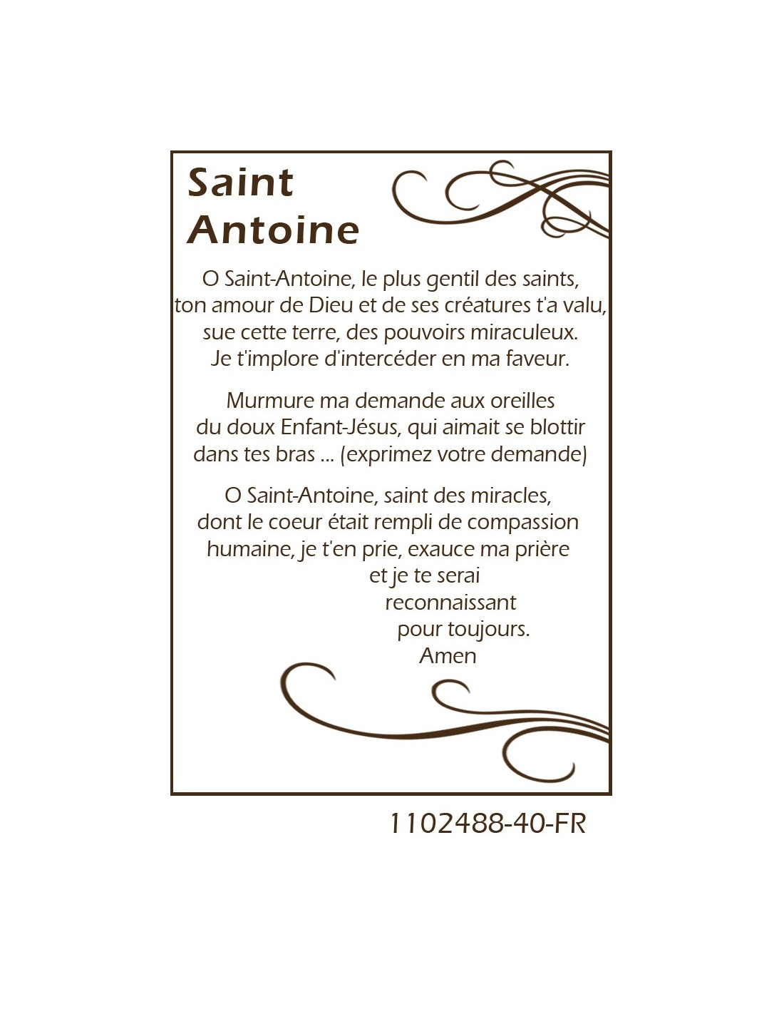 This card-medal honors Saint Anthony. Slip into a pocket or wallet, the laminated card is printed with a painting of Saint Anthony and a prayer in his name. It is adorned with a gold metal medal of Saint Anthony holding a child, which you can cut out to wear as a pendant or leave with the card as a keepsake.