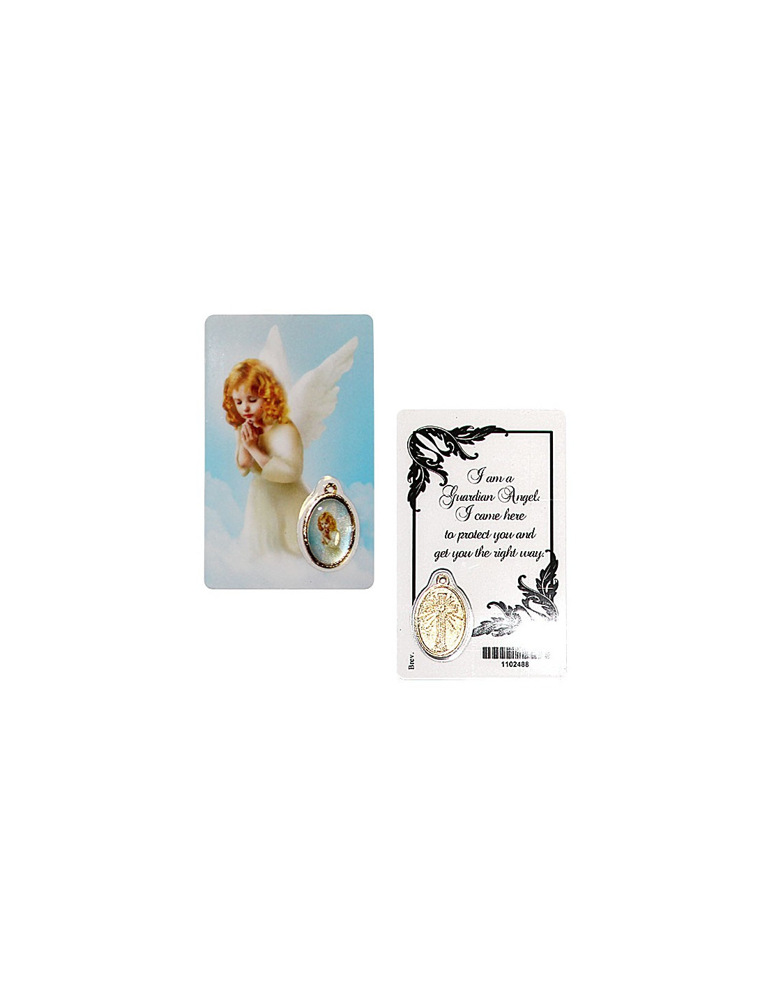 This medal card honors the Angel Protector. Slip into a pocket or wallet, the laminated card is printed with a painting of the Guardian Angel and a prayer in his name. It is adorned with a medal of the angel, which you can cut out to wear as a pendant or leave with the card as a keepsake. The small prayer on the card asks the angel to protect the person. This is a great gift to give to a child, friend or loved one.