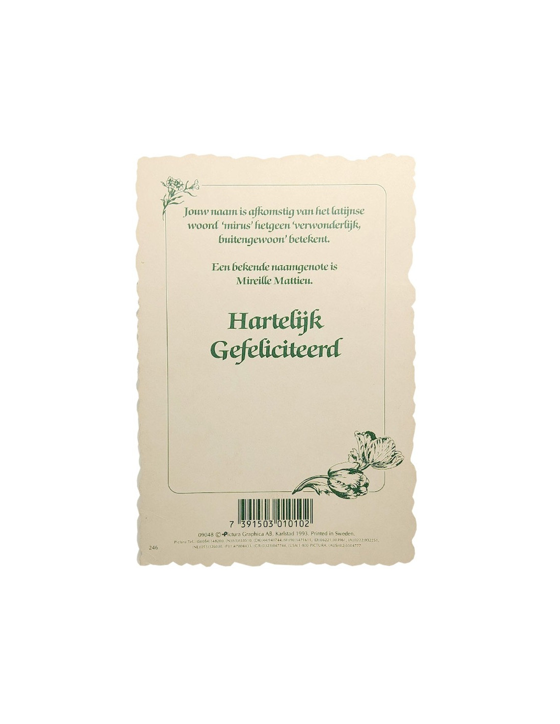 This personalized postcard presents a first name, its etymological meaning and some of the famous people who bear it. Printed on high-quality cardboard with an elegant die-cut, it's adorned with a colorful vintage-style floral frame. Perfect for a simple, original gift for a birthday, christening or symbolic note. A great way to offer a nod to a loved one's identity.