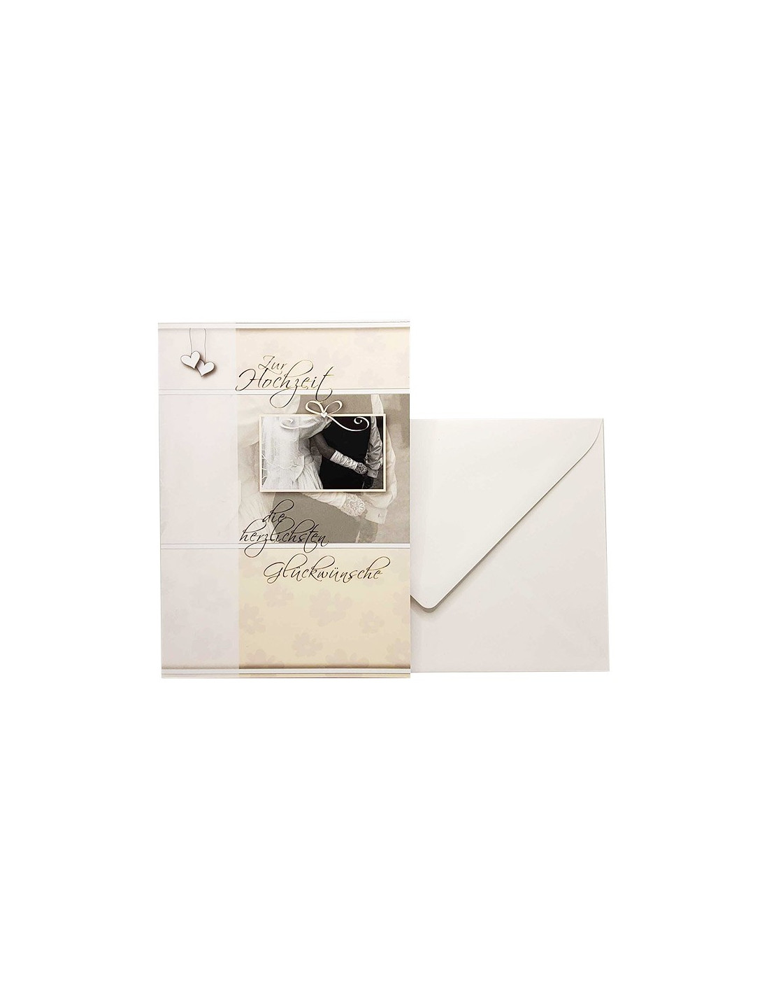 Send your most sincere wishes with this wedding card for your loved ones. Decorated like an album or scrapbook page, this card features a black and white photo of a couple in wedding attire and a congratulatory message in shiny metallic gold. Simple and timeless, it is ideal for expressing your best wishes for happiness to the couple who are united in love and mutual respect. The inside of the card is blank, allowing you to give free rein to your imagination and write a personalized message. The card comes with a matching envelope. The text is in German only.