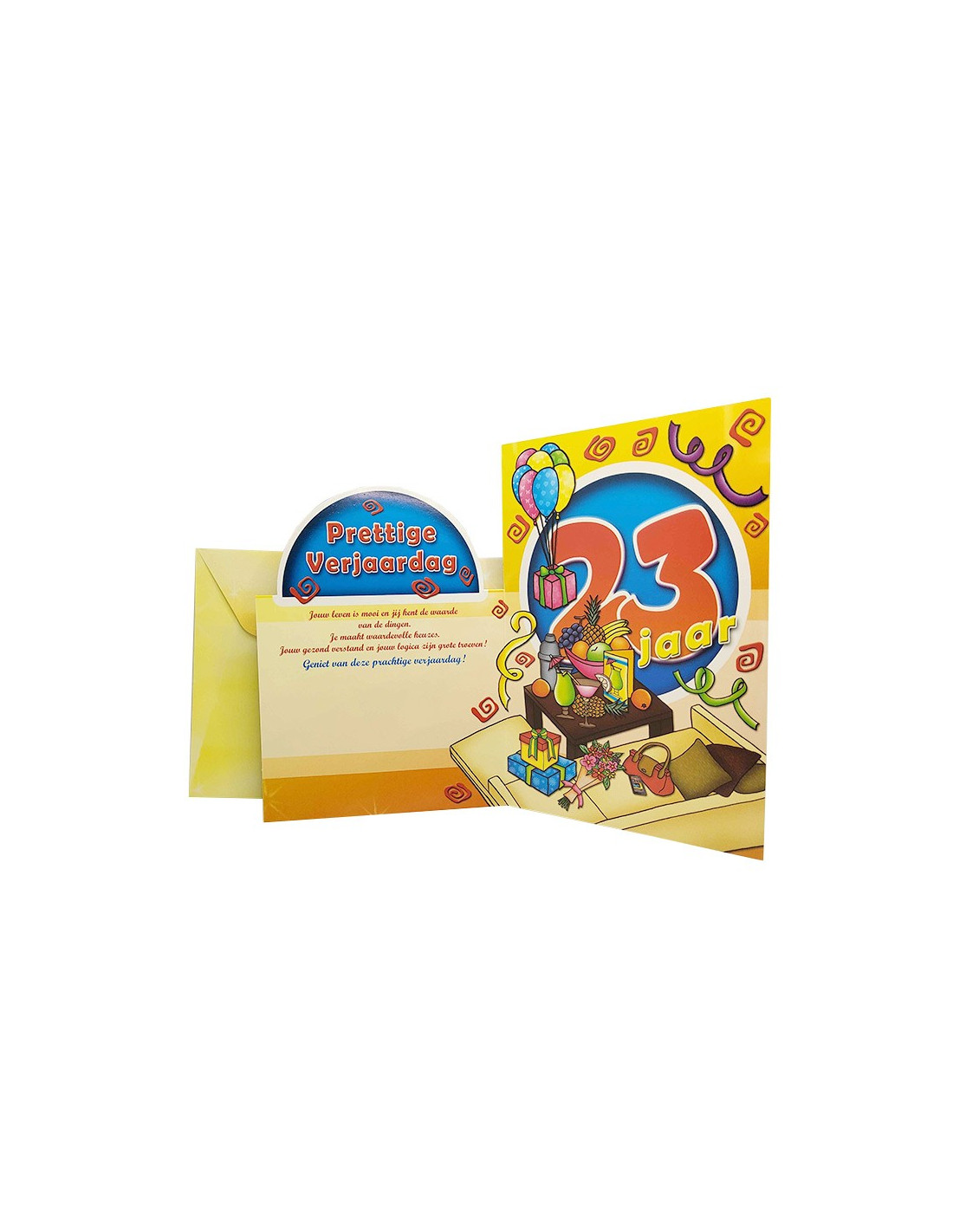 Young adults entering the workforce is a milestone worth celebrating. So for the 23rd birthday of your loved one, send them this birthday card! Celebrate this event in retro style with this greeting card decorated with glitter and a shiny effect. The card has an original cut-out design highlighting the number of years being celebrated. Accompanied by a thoughtful message inside, there is also space for you to add a few personal words. The card comes with a matching envelope. The text is in Dutch only.