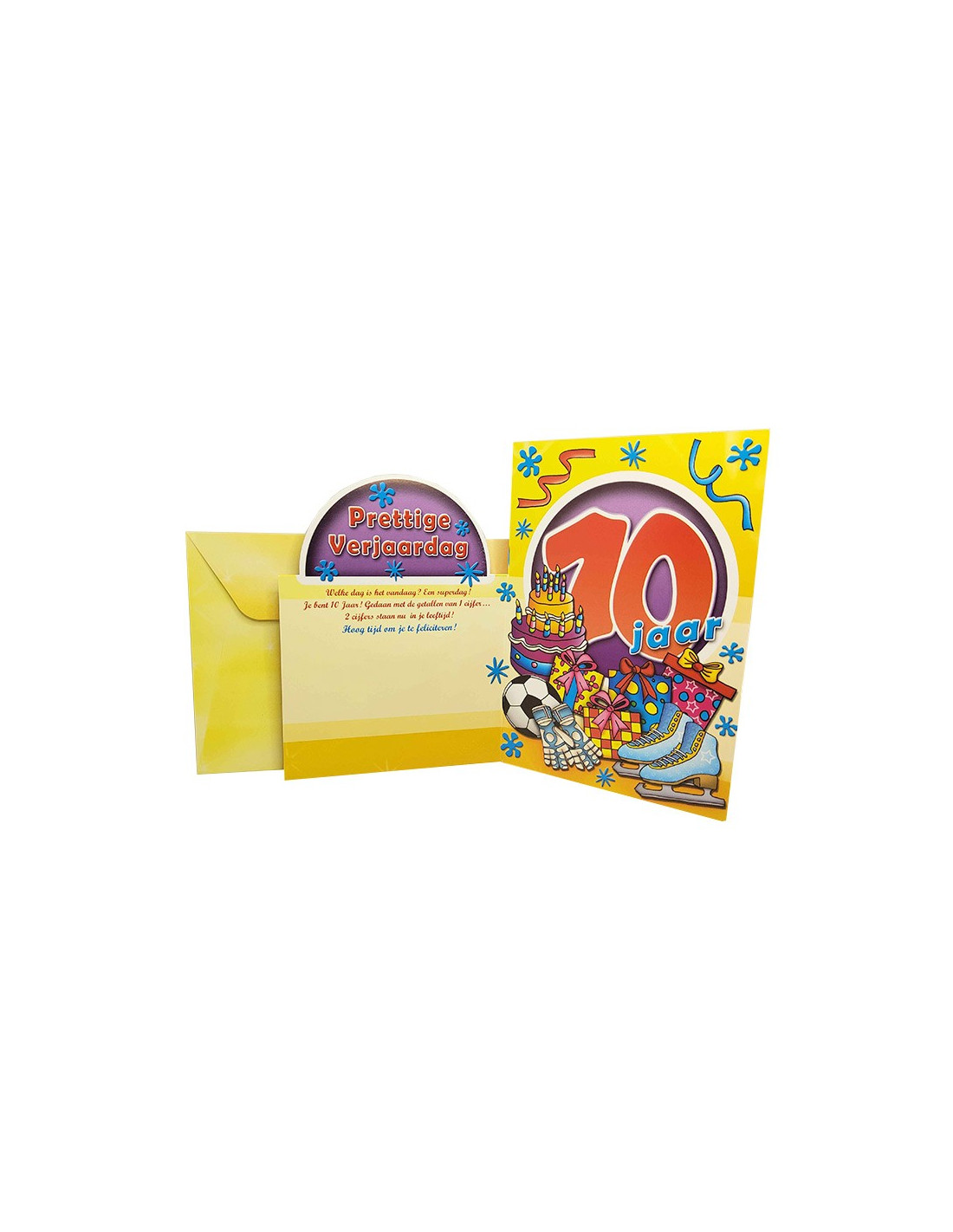 A child's first decade is a milestone, a key stage in life! So for the 10th birthday of someone you love, send them this birthday card! Celebrate this event in retro style with this greeting card decorated with glitter and a shiny effect. The card has an original cut-out design, highlighting the number of years being celebrated. Accompanied by a thoughtful message inside, there is also space for you to add a few personal words. The card comes with a matching envelope. The text is in Dutch only.
