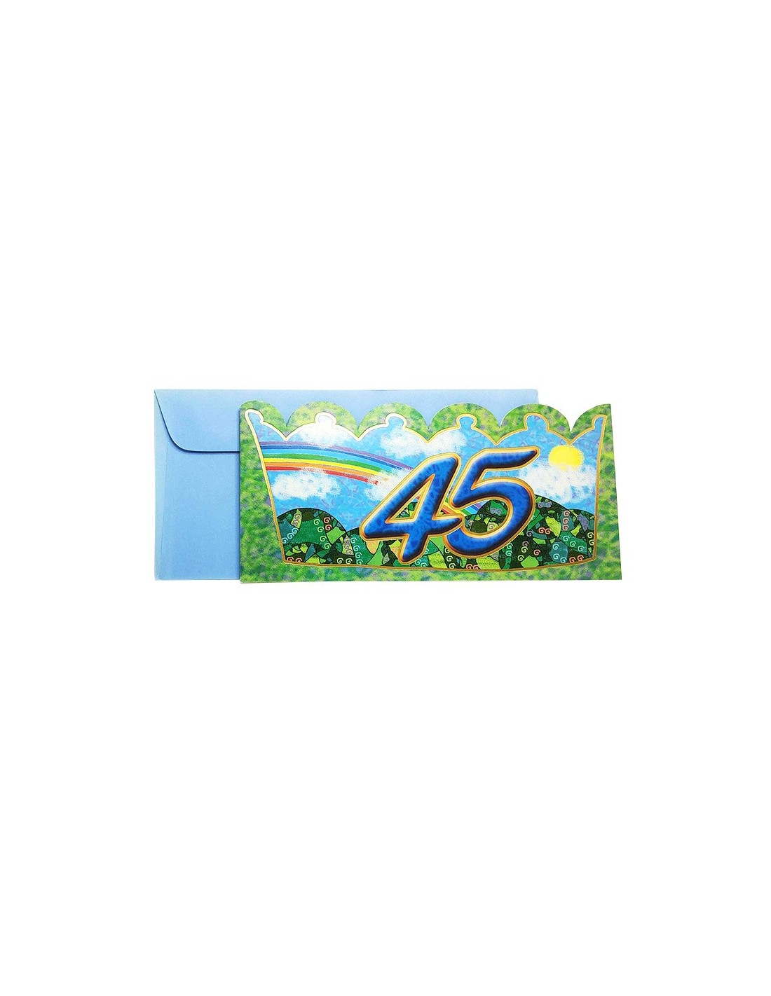 Celebrate your loved one's 45th birthday with this birthday card. Shaped like a crown with gold outlines, it is illustrated with soft, natural colors. The inside of the card contains a short pre-written message and space to add a few personal words.