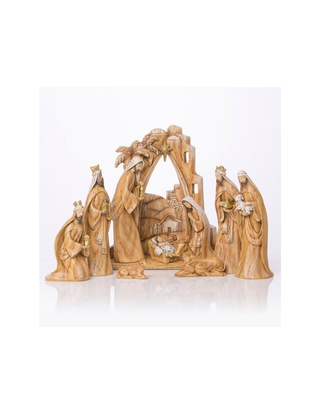 Natural Wooden Nativity Scene with LED Light – Laser-Cut Craft – 32 cm