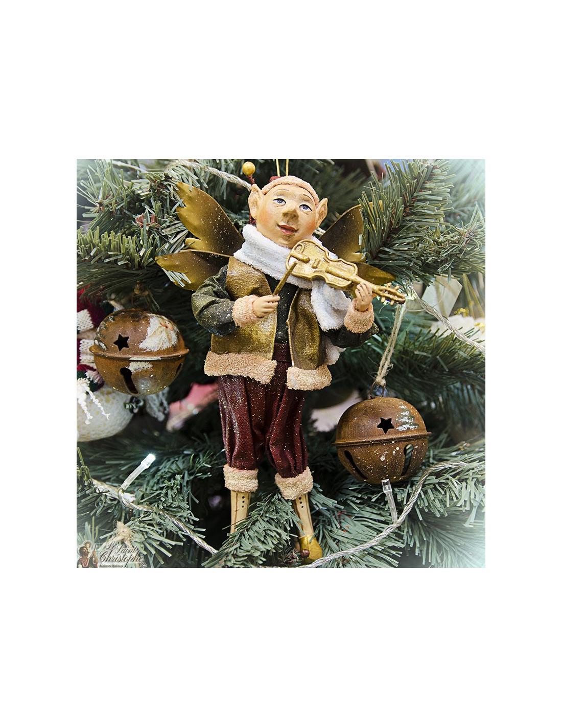 Add charm, elegance, and a touch of magic to your Christmas decorations with this hanging Musician Elf, a refined character inspired by the chic style that is so popular in the United States.