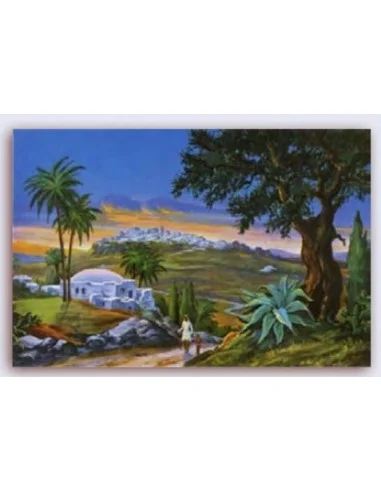 With its vibrant colors and Holy Land landscape, it’s the perfect backdrop for your Nativity scene.
