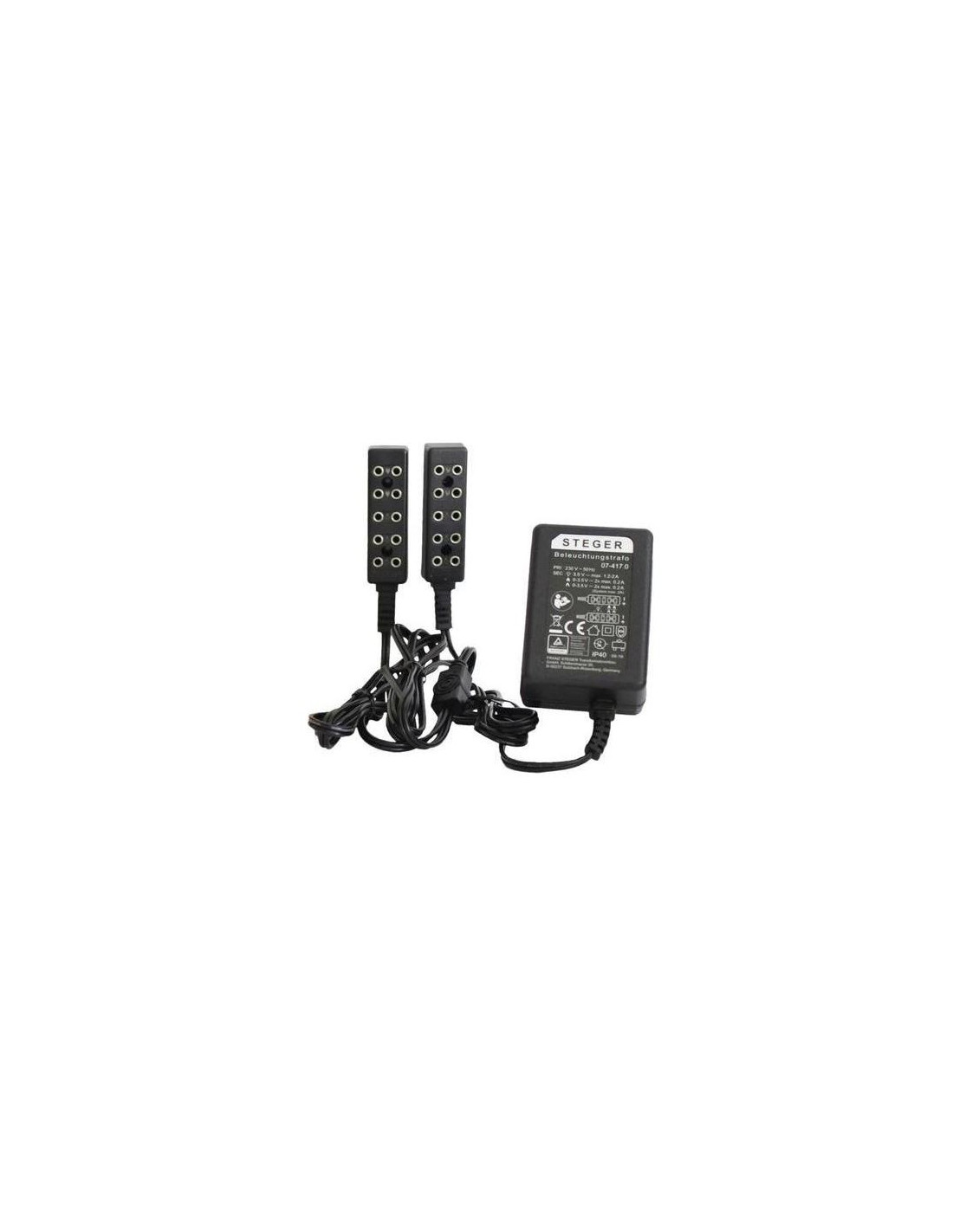 For up to 10 x 3.5V incandescent bulbs, 200mA or 100 x 3.5V LEDs, 20mA each. 6 x night lights, 2 x flickering lights, 2 x candles.