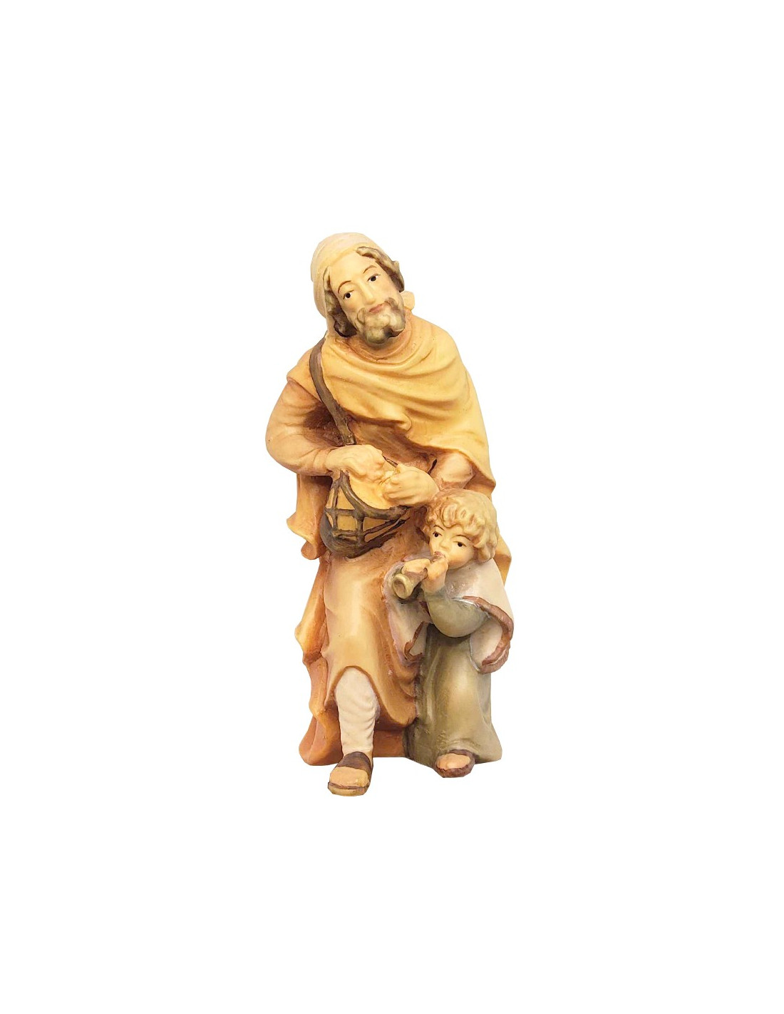 Shepherd with child playing instruments - 11 cm wooden figurine