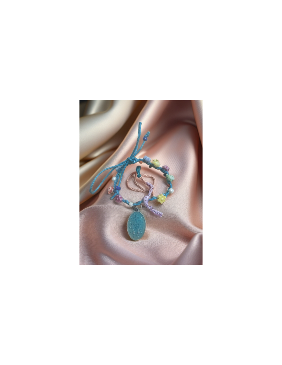Braided Bracelet Miraculous Medal – Flowers & Dolphins Blue