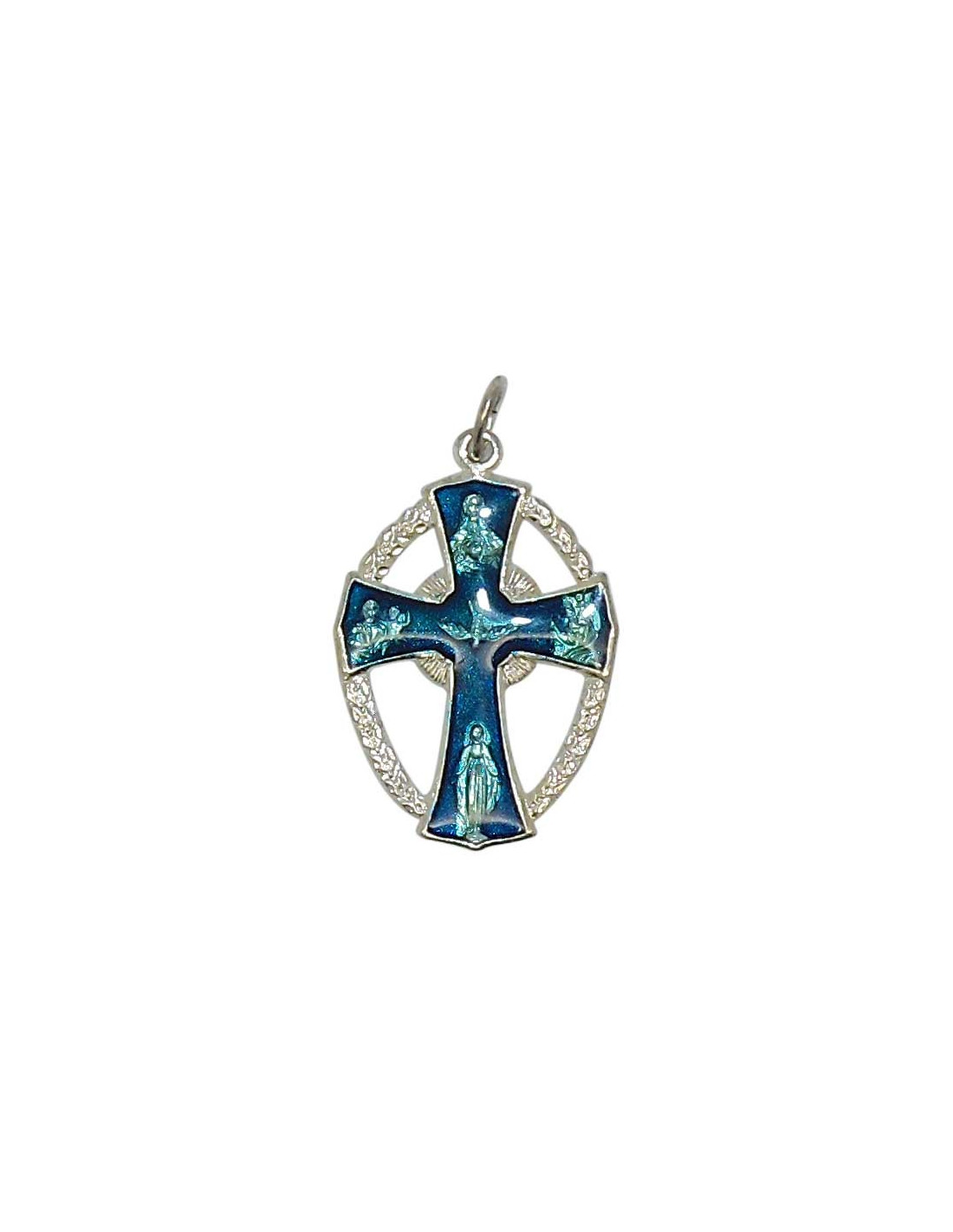 Cross of the Holy Spirit with Saints Protectors blue enamel