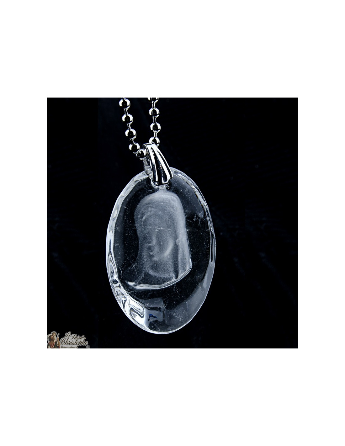 Necklace pendant medal of the Virgin Mary in translucent glass
