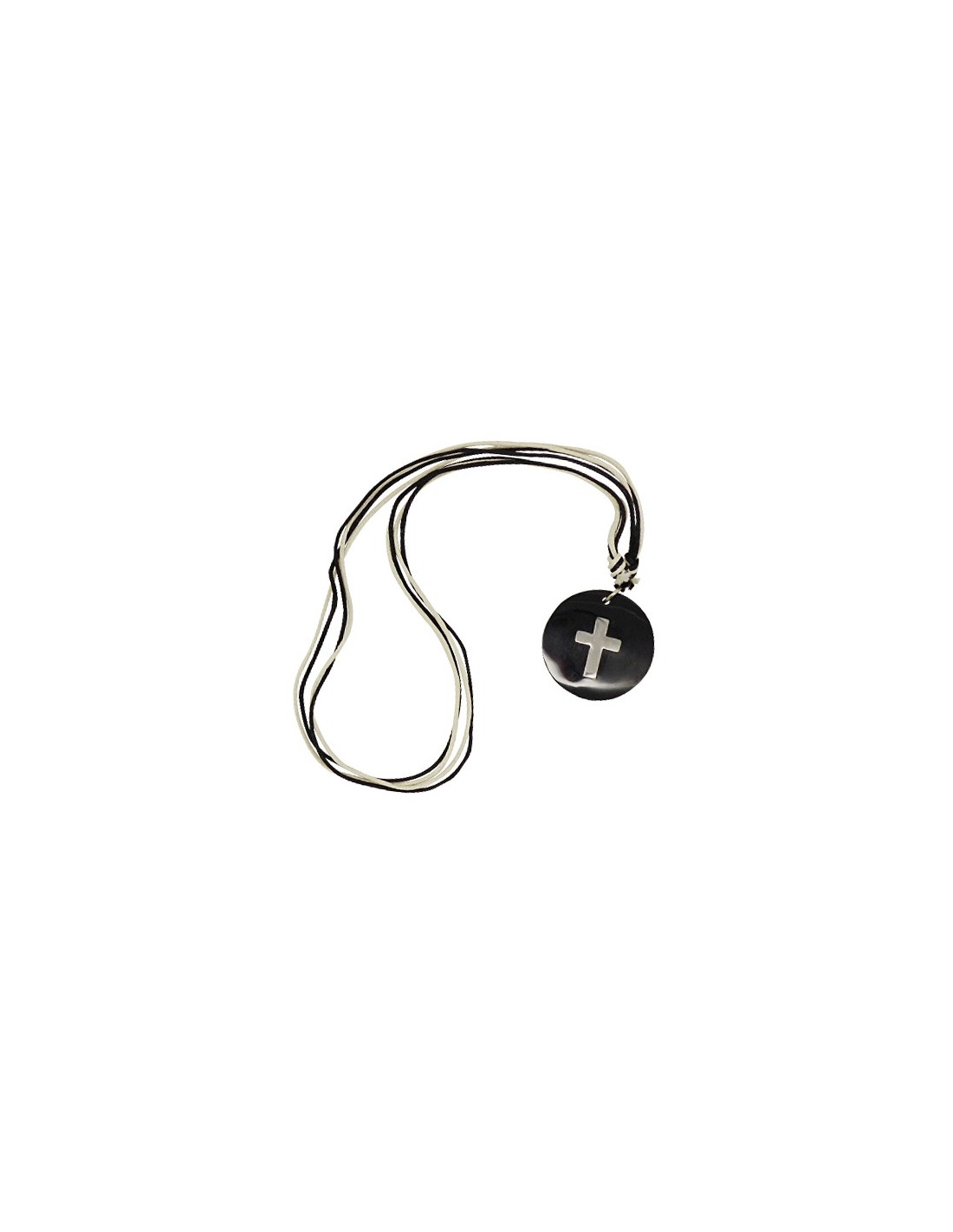 Adjustable cord necklace to suit children or adults. The pendants are made of resin and hand made. They have a black background with a silver cross. We propose several models.