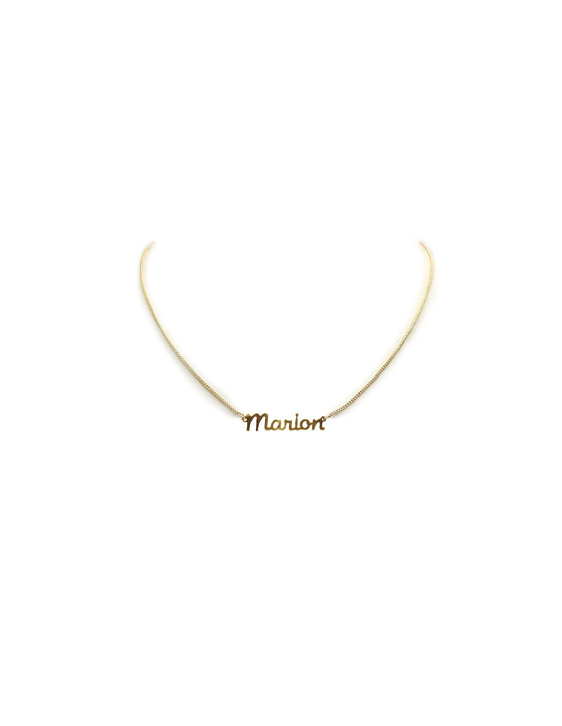 Display your first name or that of a loved one with this gold-plated choker necklace. The name "Marion," in neat gold-plated letters, is set on a gold-plated metal chain. An affectionate diminutive of Marie, Marion symbolizes lively innocence, sincerity, and affectionate energy. This refined piece of jewelry is a tender gift idea, perfect for a birthday, anniversary, or special occasion.