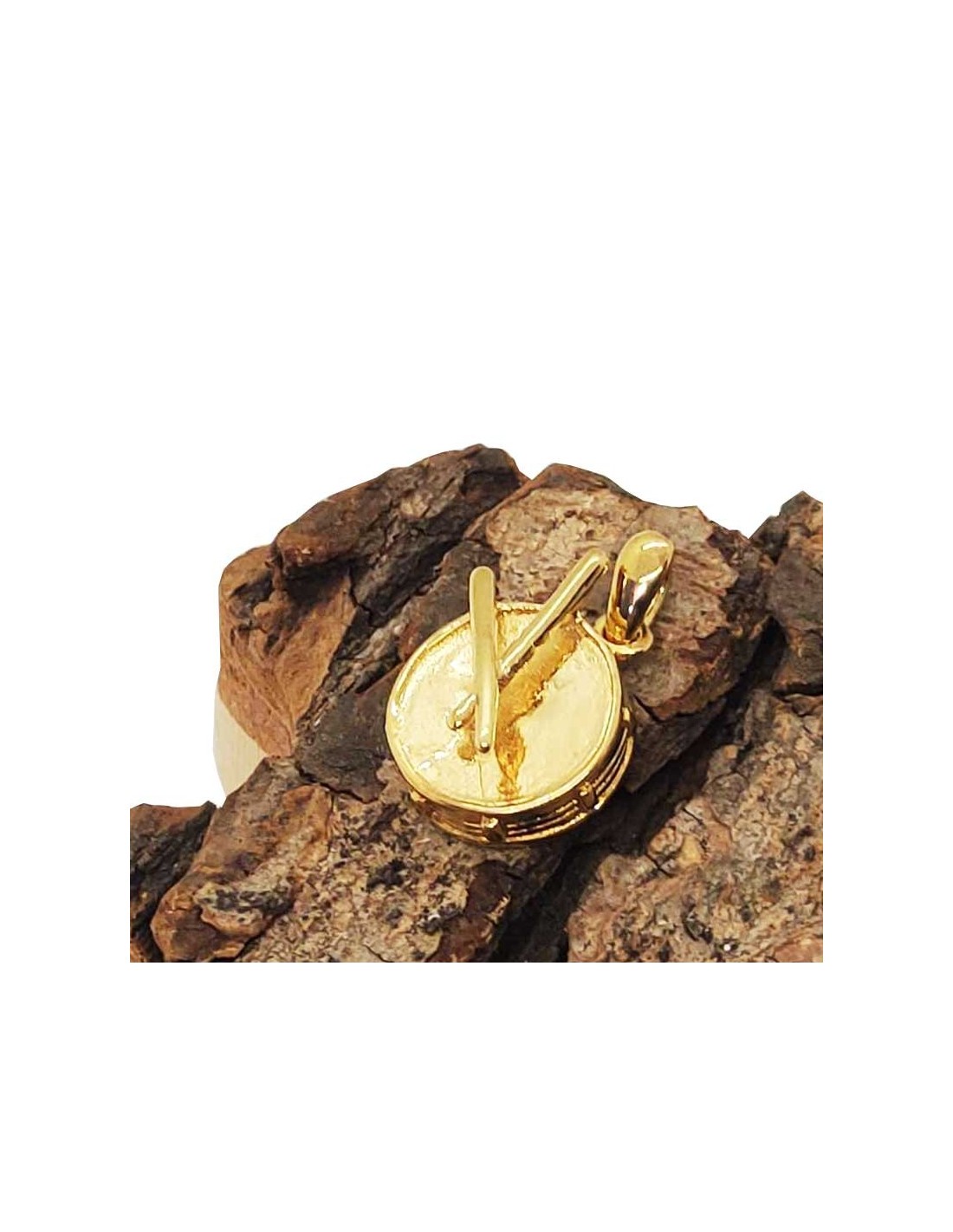 Gold-plated metal pendant in the shape of a drum set with two drumsticks. An ideal gift for drummers, music and percussion instrument lovers, for a birthday, concert or solfeggio diploma, for example!
