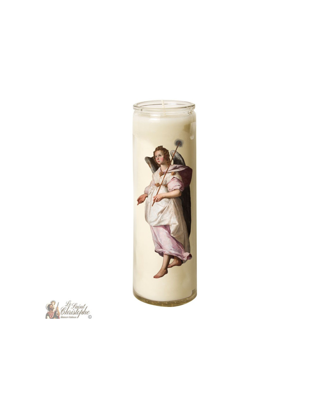 With the image of an angel holding a scepter as decoration, this candle can be used for prayer, meditation, decoration or even esotericism.