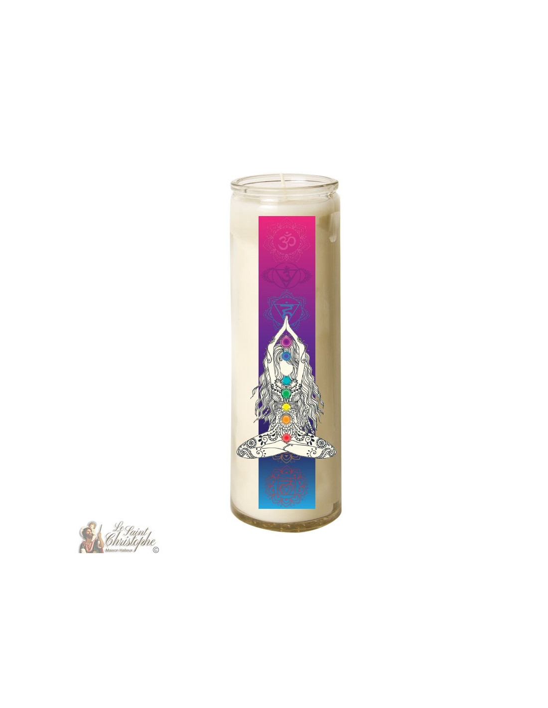 With a beautiful illustration of the seven main chakras and a yogi full of arabesques in decoration, this candle can be used for prayer, meditation, decoration or even esotericism.