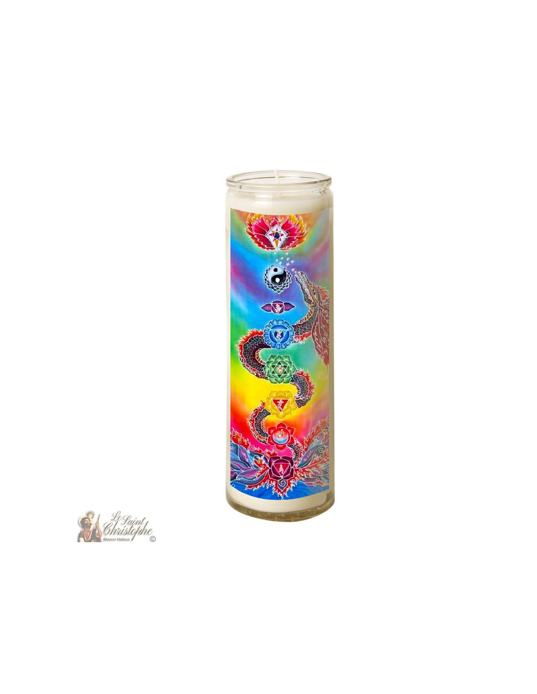 With the image of a dragon winding around the seven main chakras as decoration, this candle can be used for prayer, meditation, decoration or even esotericism.