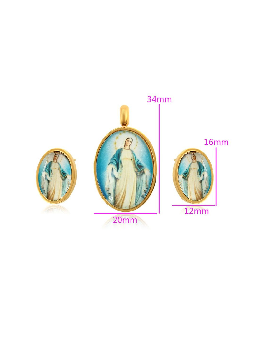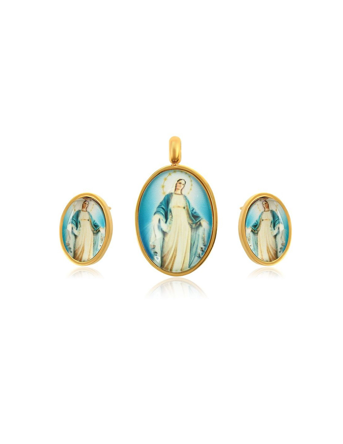 Set of pendants and earrings Miraculous Virgin - 24 k gold plated