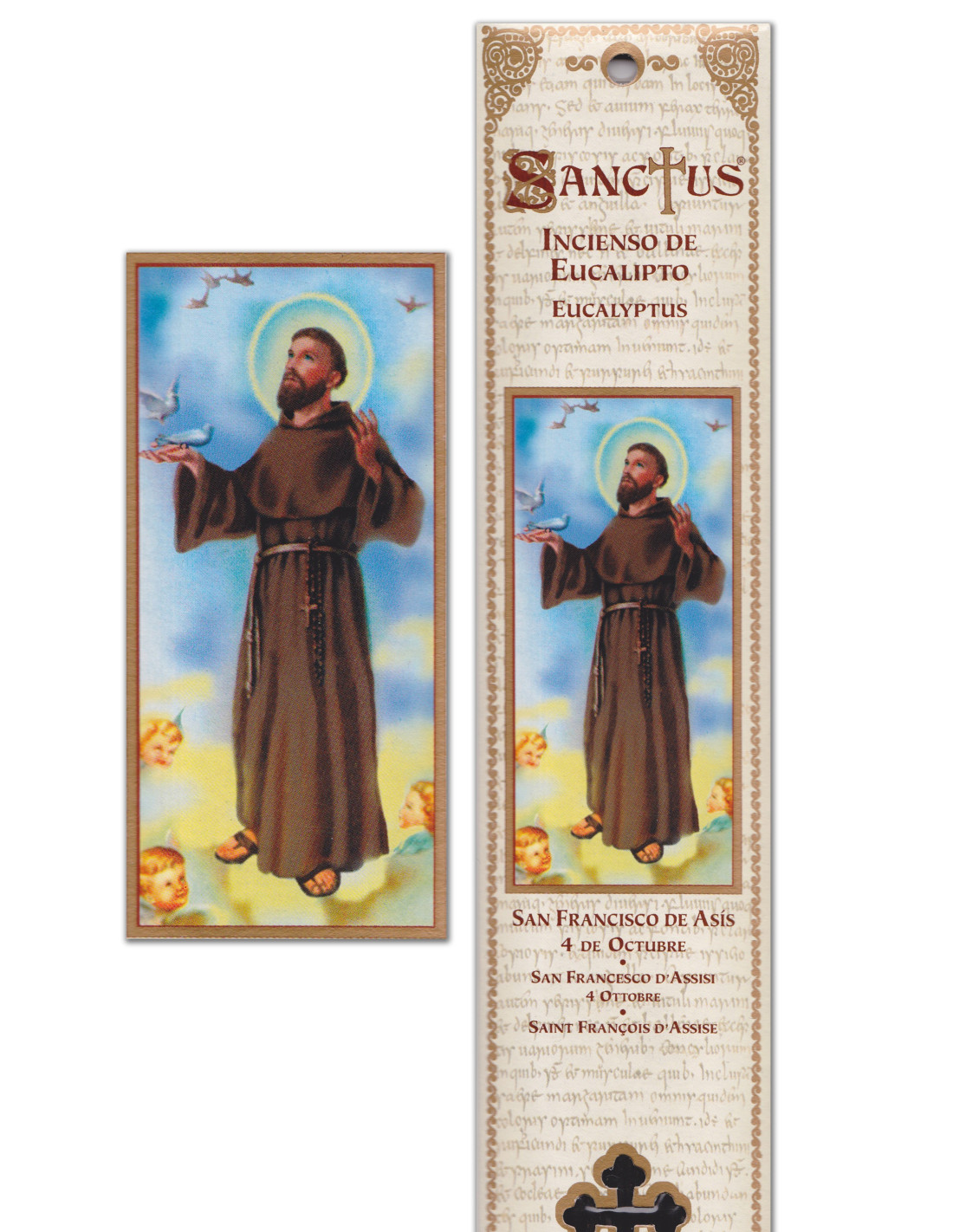 This pouch, in the image of Saint Francis of Assisi, with bright colors, contains 15 sticks of natural incense with the fresh scent of eucalyptus. It is mainly prayed on October 4. This incense is used to strengthen faith and promote Unconditional Love for all forms of life. It invites to be attentive to others and develops empathy.