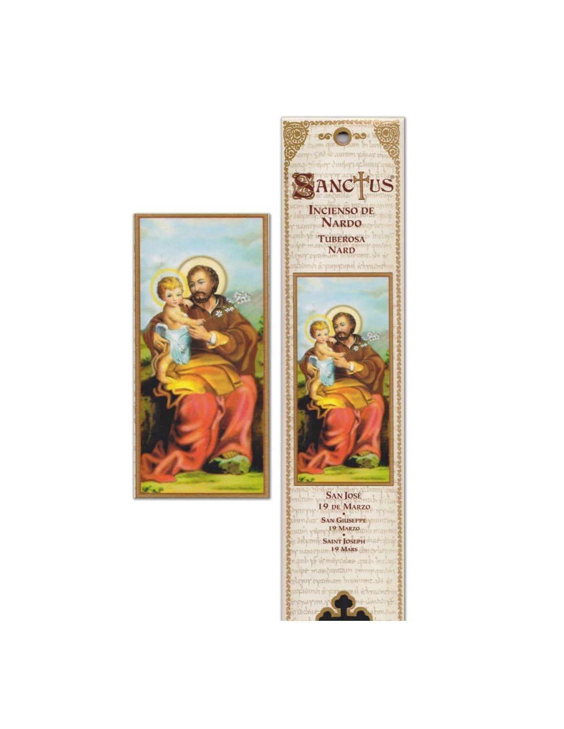 This pouch, with the image of Saint Joseph, holding a child and a flower stem, all in very shimmering colors, contains 15 sticks of natural incense with the intoxicating scent of tuberose. The tuberose is one of the symbols of Saint Joseph. It is mainly prayed on March 19. This incense is used to strengthen fidelity, humility and patience. It is also burned for business and work because it helps motivation, communication and pro-activity, essential qualities in the field.