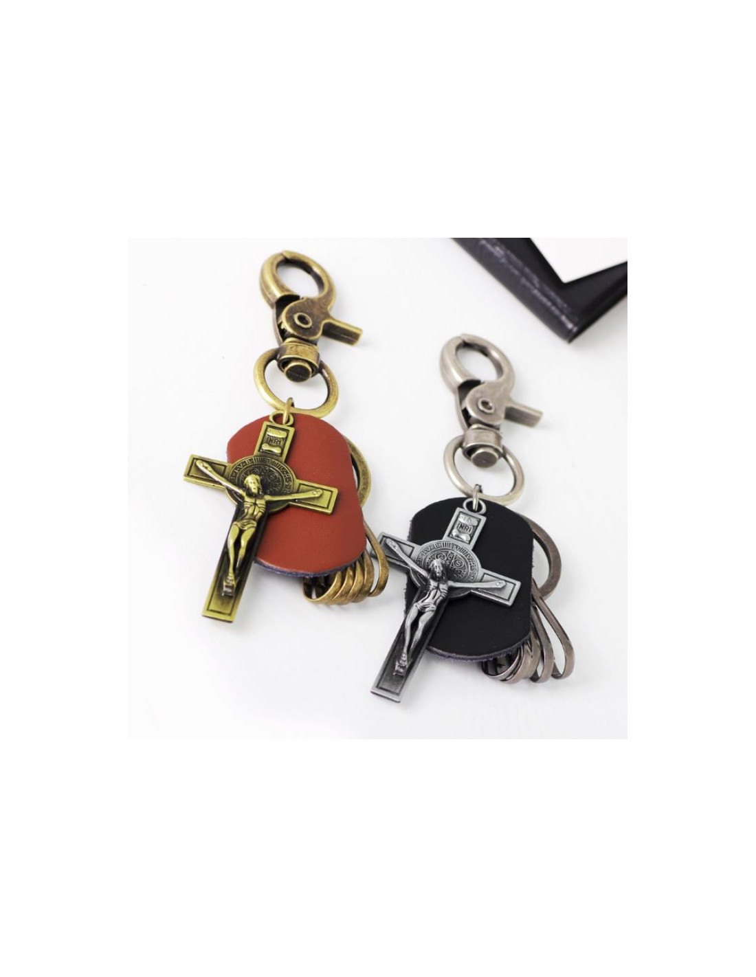 Olive wood cross with cord - Silver Crucifix large