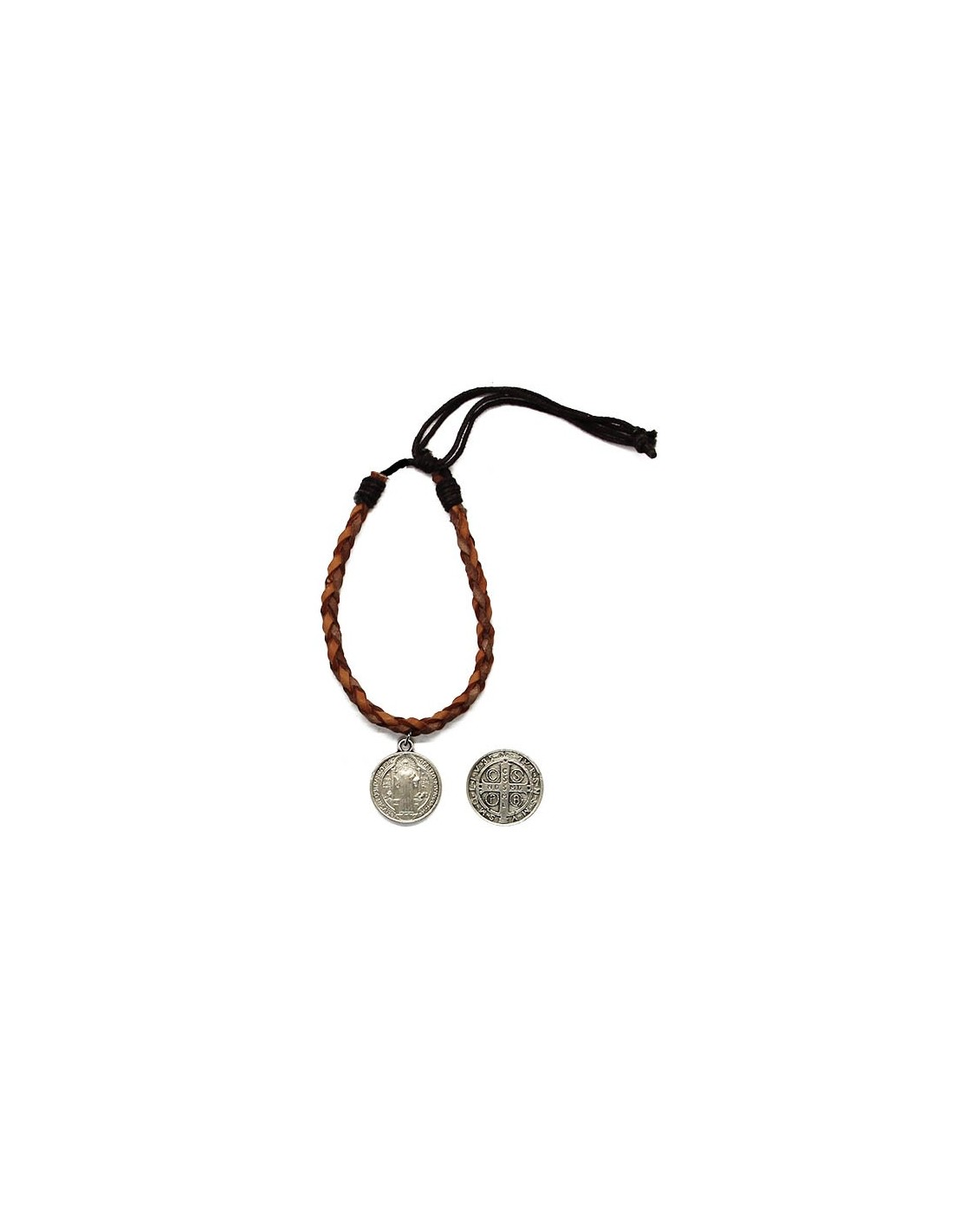 This brown leather bracelet is made from several cords intertwined to give a beautiful braid. The attachment is made by other black leather cords, the size can be modulated according to your desires. The finely chiseled medal is made of silver metal. The medal of Saint Benedict is a symbol of protection against bad people, it keeps away those who want to harm the person who wears it.