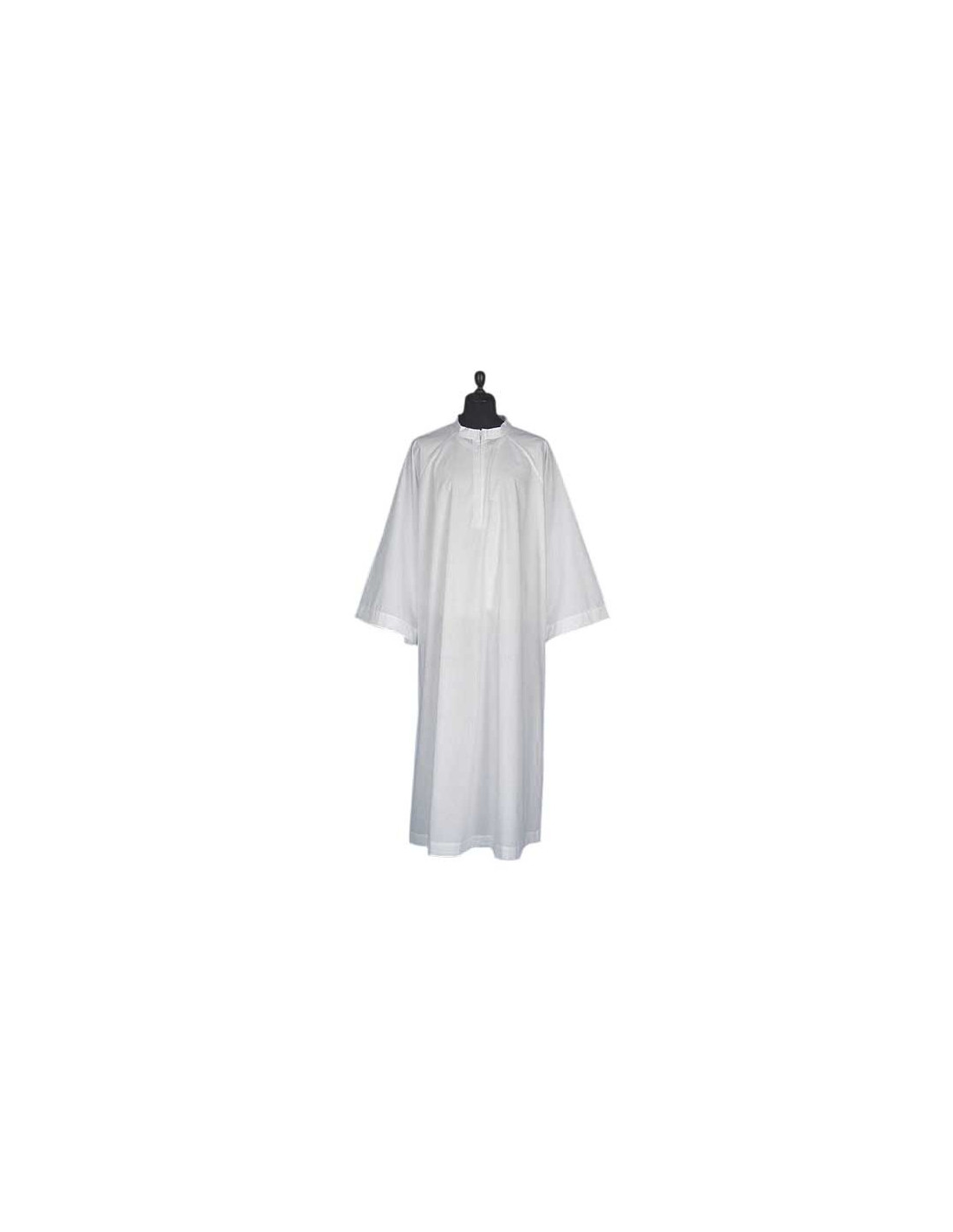 Adult size alb with front zipper and wide sleeves, for priest or acolyte. Made of cotton, the garment is machine washable. To dry, simply leave it in the air, without ironing.
