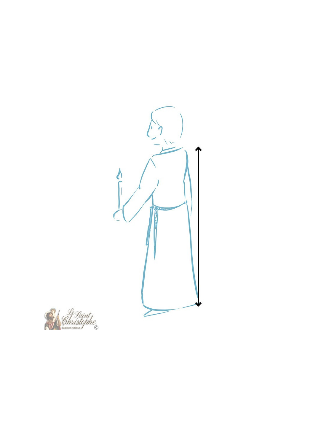 To know the ideal size of your alb, measure from the back of your neck to the feet or ankles, depending on where you want the dress to fall.