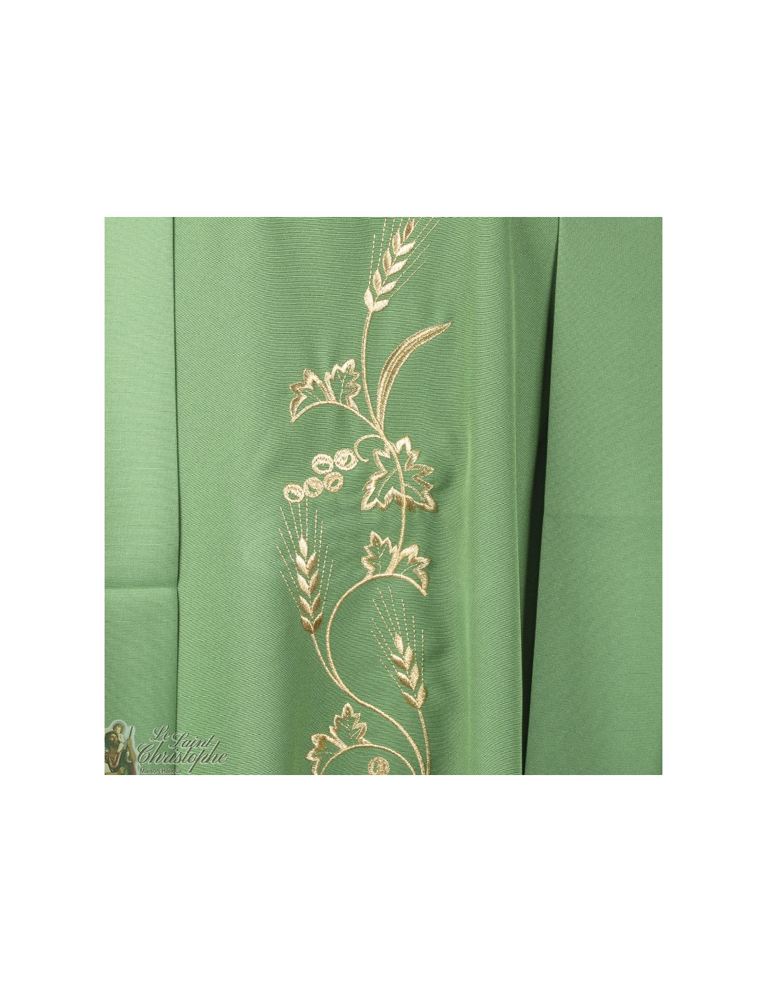 The traditional double-sided hand embroidery features classic Eucharistic motifs: ears of wheat (symbol of the Bread of Life) and grape clusters (symbol of the Blood of Christ).