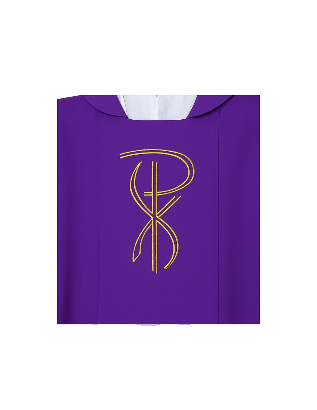 Chasuble with embroidered stole, stylized PAX symbol – Purple