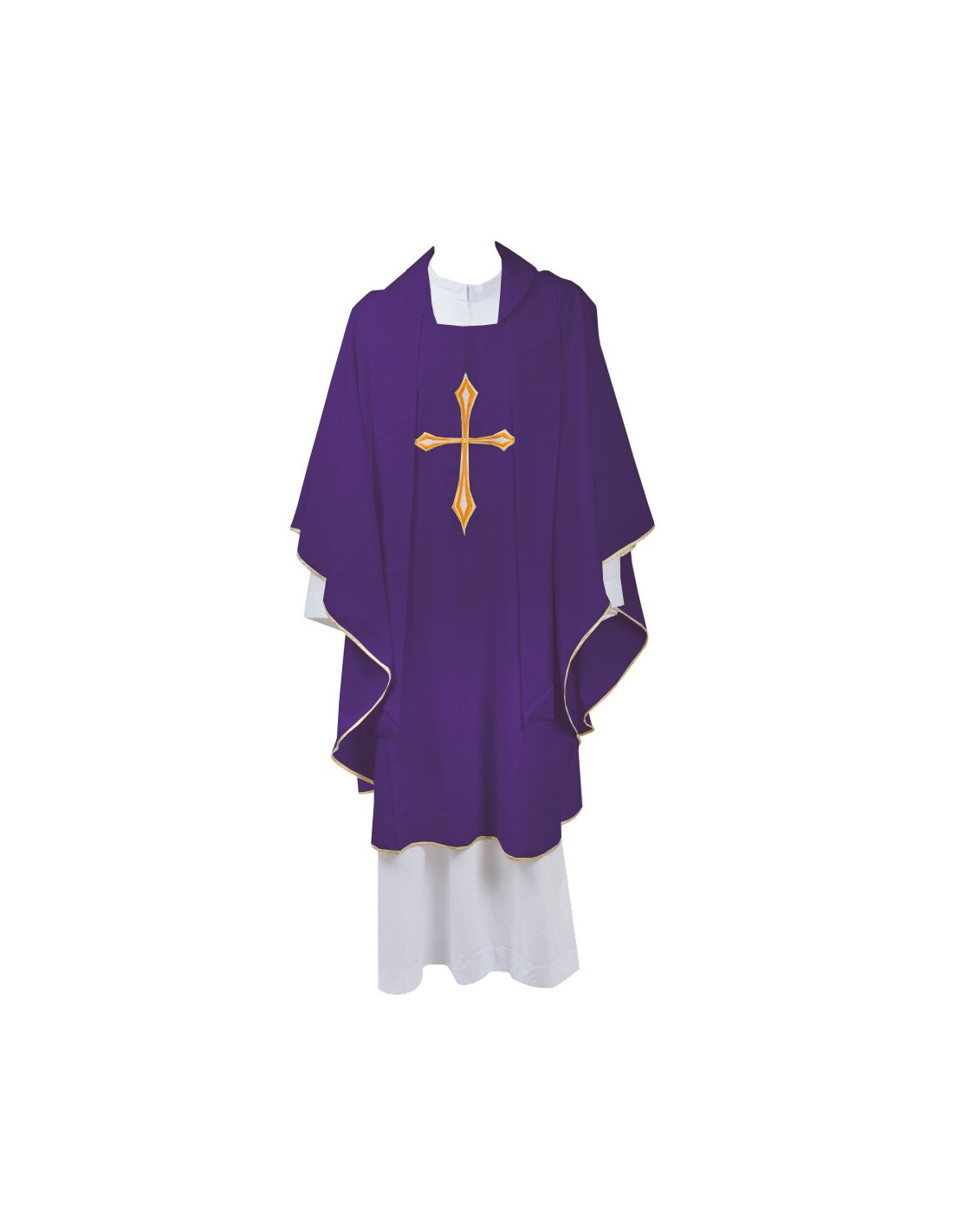 The mauve hue, traditionally associated with Advent and Lent, gives this chasuble a strong spiritual dimension, perfectly suited to liturgical times of recollection. The gold trim adds a touch of elegance, while emphasizing the garment's lines.