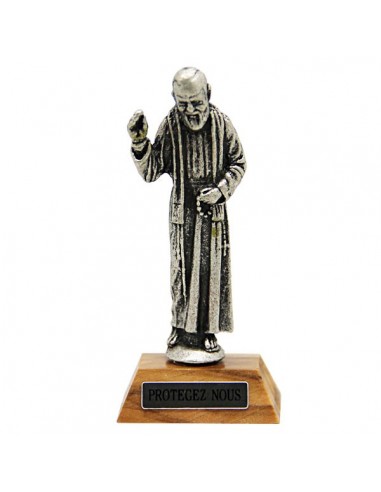 This statue of Padre Pio combines sobriety and devotion. Made of silver-tone metal, it rests on a wooden base marked with the inscription “Protect us”. Perfectly stable and elegant, it is ideal for a bedside table, a personal altar or a shelf. Small in size, large in symbolism, it is ideal to accompany daily prayer or as a spiritual gift of hope and comfort.