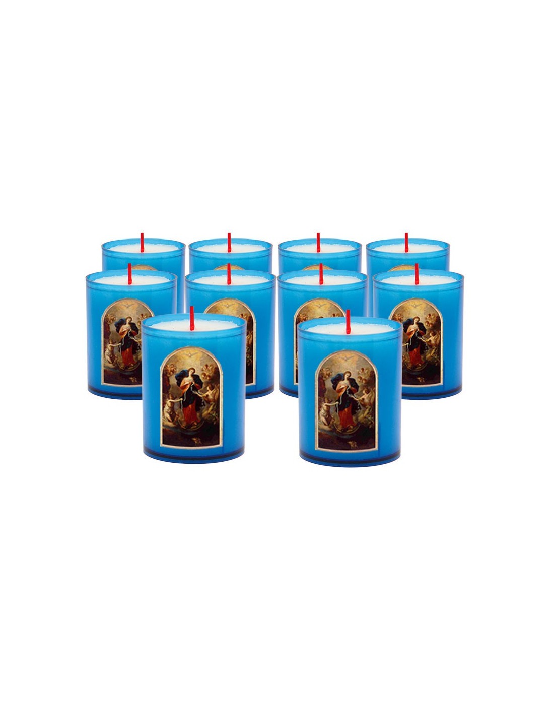 Blue night-light candles with the image of Mary untying knots. Sold in packs of 10.