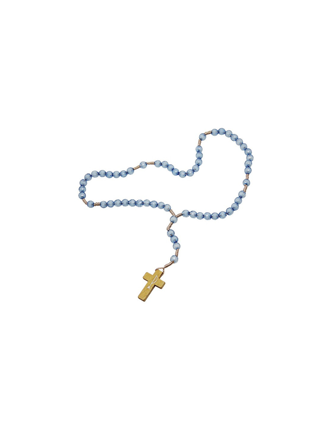 Children’s Cord Rosary – Blue Beads & Wooden Pax Cross