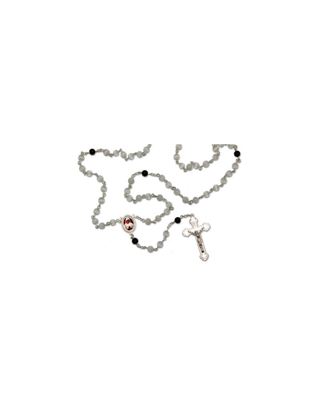Banneux religious rosary stone cat's eye white and black