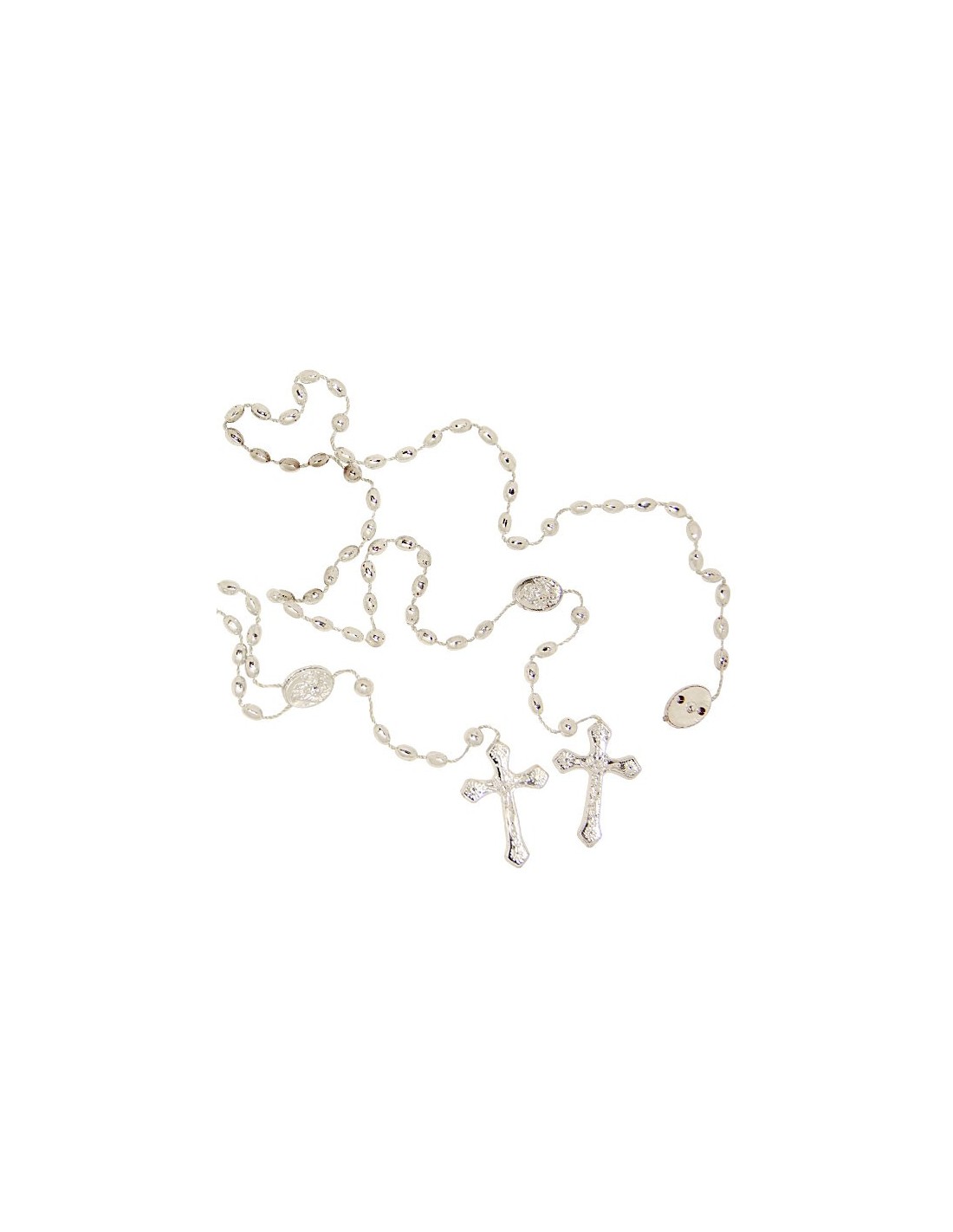 Communion Real white rosary with mother-of-pearl pearls and communion box 5020041 (1 review) €9.50 Silver plated metal rosary mounted with white pearls in real mother-of-pearl.The heart of the rosary is a chalice - Storage box Beads: 7 mmLength of the rosary: 45 cm Add to cart