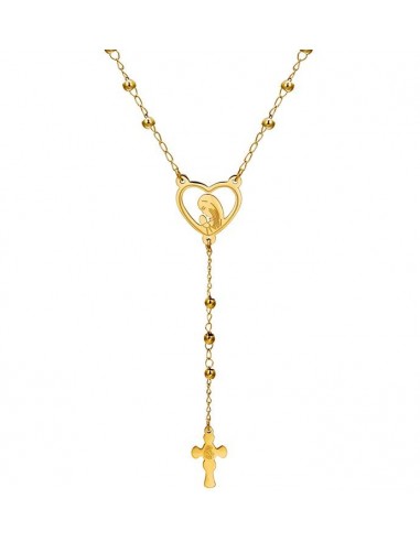 This gold-plated rosary is a discreet jewel that silently testifies to faith while bringing a bright and sweet touch. Its heart-shaped centerpiece features a figure praying with joined hands.
