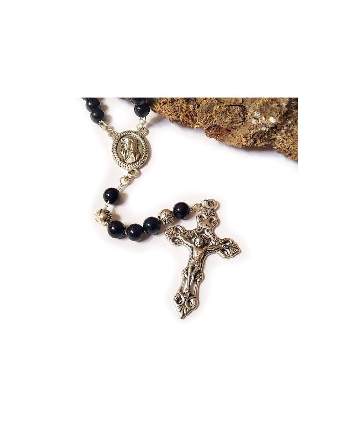 Add a touch of faith and sophistication to your style with this unique rosary. Perfect for any occasion, it also makes a meaningful gift.