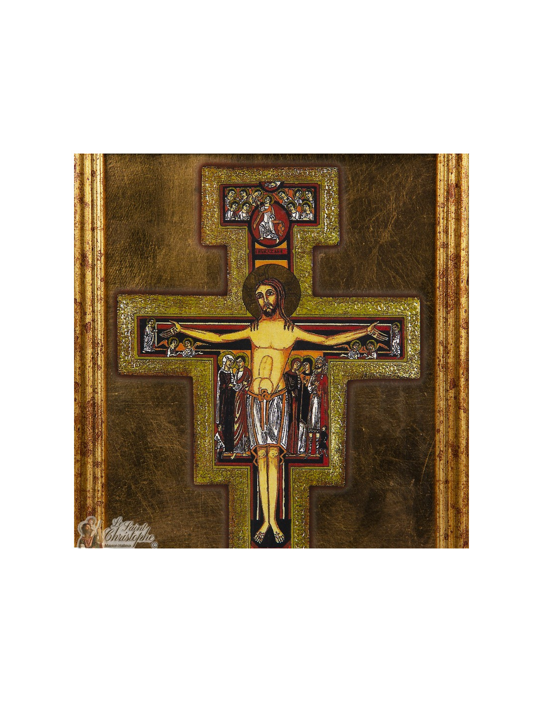 Icon of the crucifix of Saint Damian, also known as the Cross of Saint Francis, with frame. This cross is so called because Saint Francis of Assisi felt challenged by Christ while meditating in front of it.