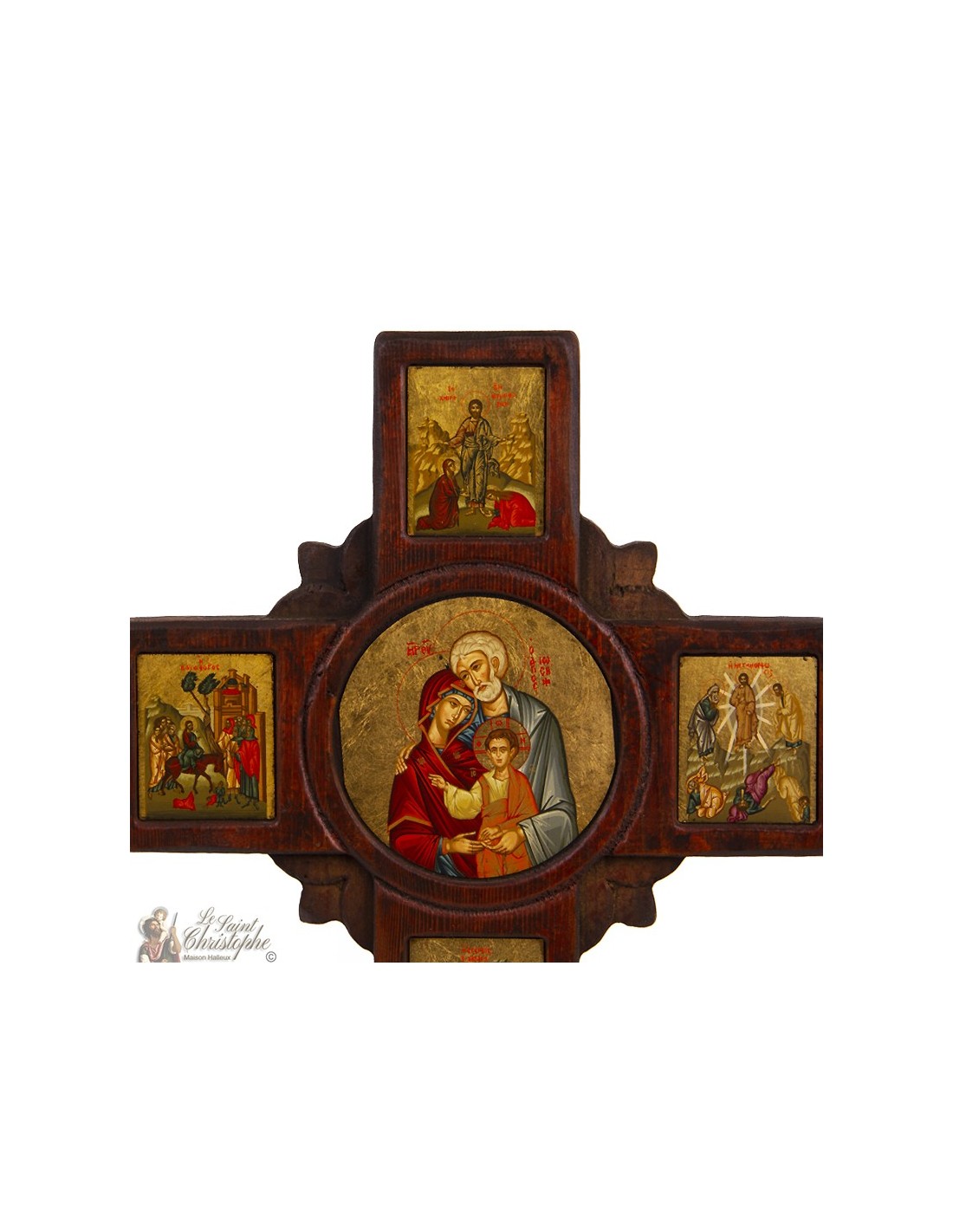 Cross Icon 37 x 24 cm - Holy Family and Biblical Scenes