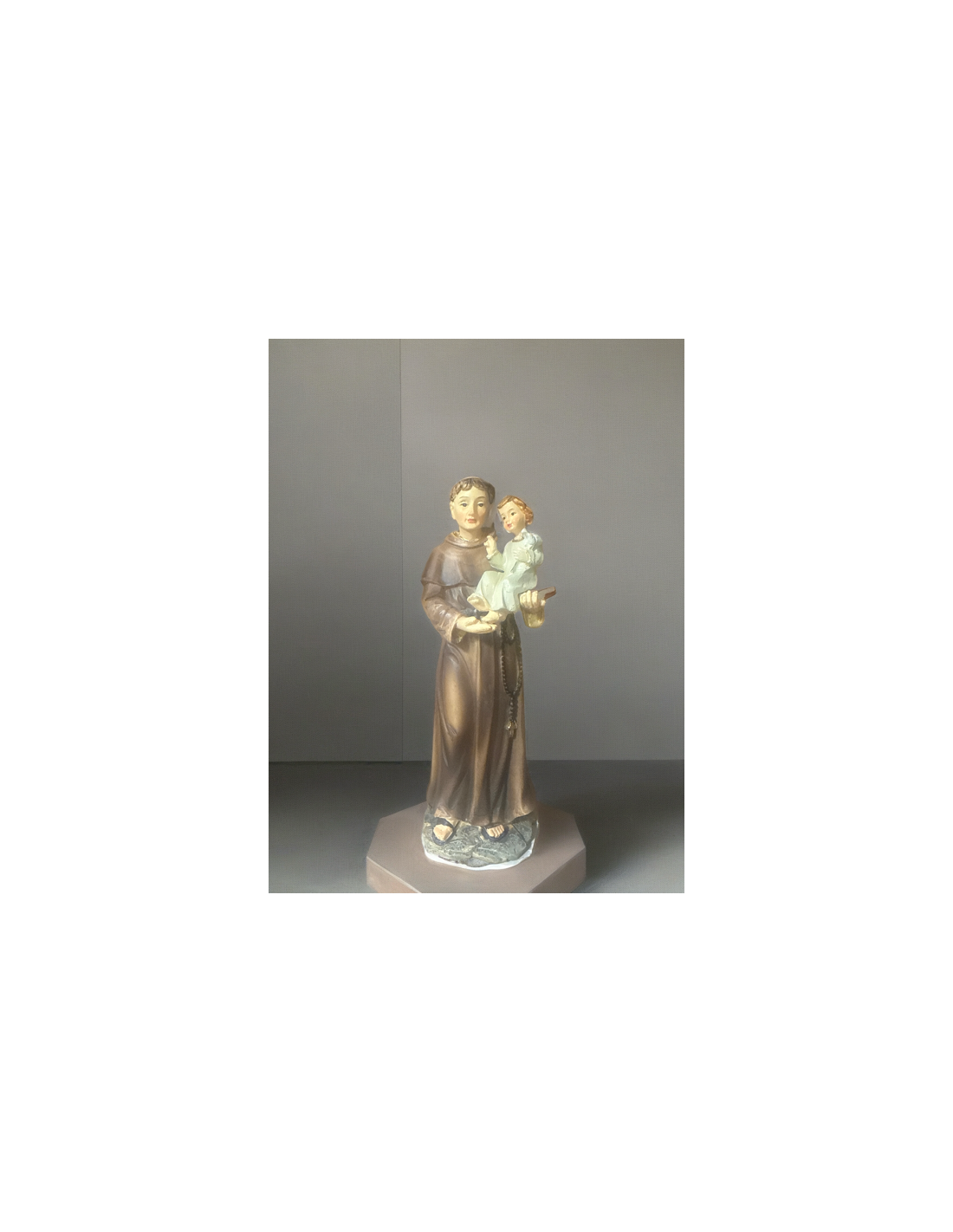 Bring a soft spiritual touch to your home with this elegant Saint Anthony of Padua statue. Measuring 13.5 cm, it depicts Saint Anthony holding the Child Jesus — a strong symbol of faith, love, and peace.