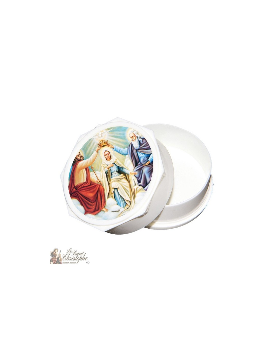 Plastic box that can contain a rosary, ten, hosts...