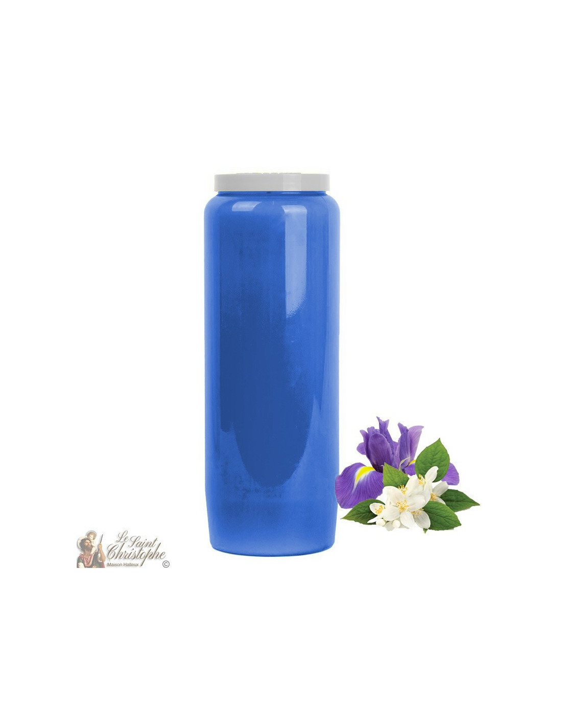 Novena candle scented with jasmine and iris, dark blue. One box contains 20 candles.