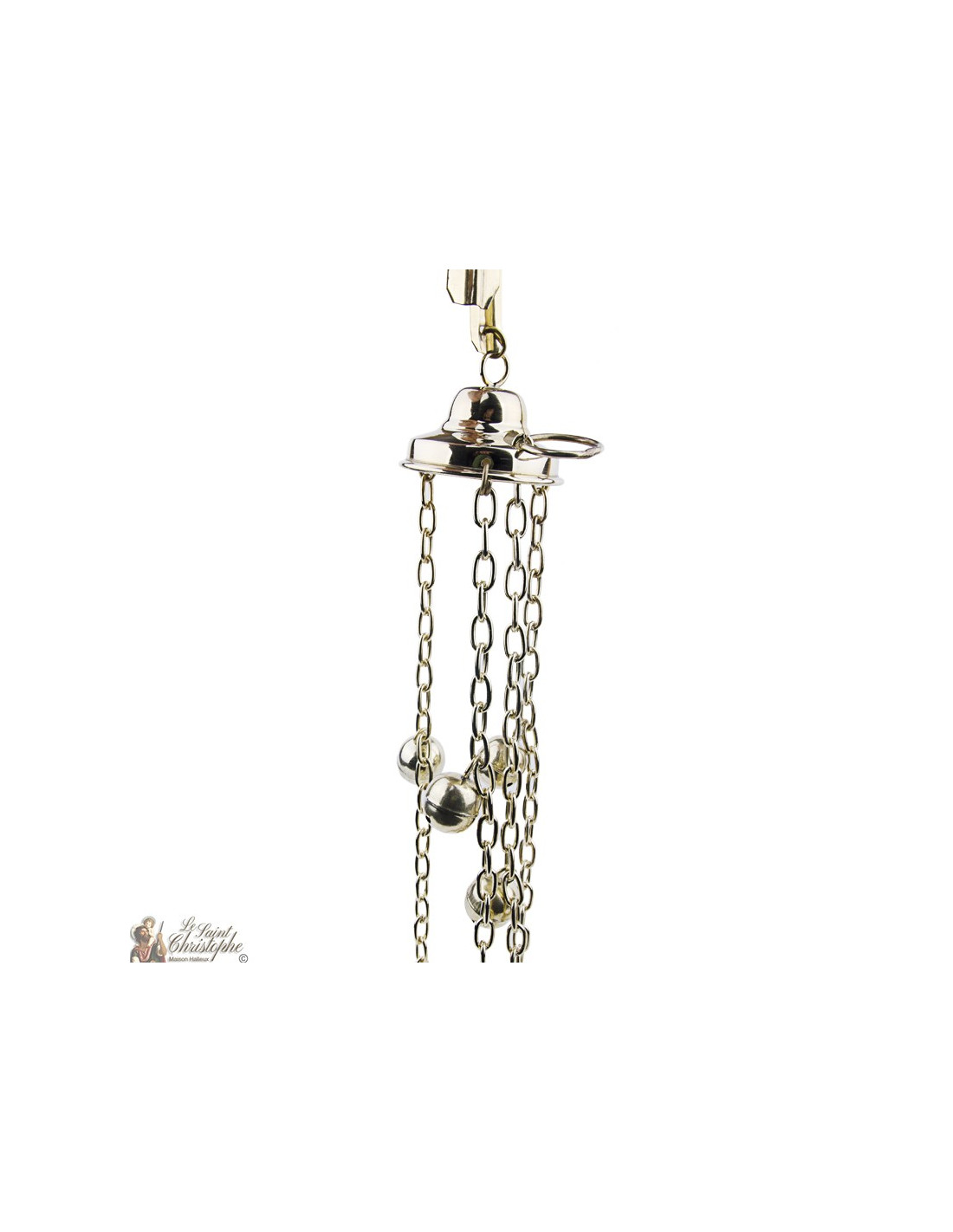 This censer is finely carved on all its surface, decorated with delicate plant motifs. It is provided with chains, allowing it to be suspended. The chains themselves are provided with softly tinkling bells. The censer is in large size, perfect for religious ceremonies.