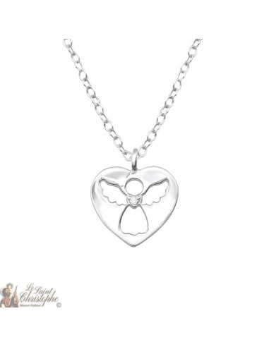 Fine mesh chain, discreet and sober. The pendant is a heart inside which a small angel is seen from the front, a crystal is inlaid in its heart.