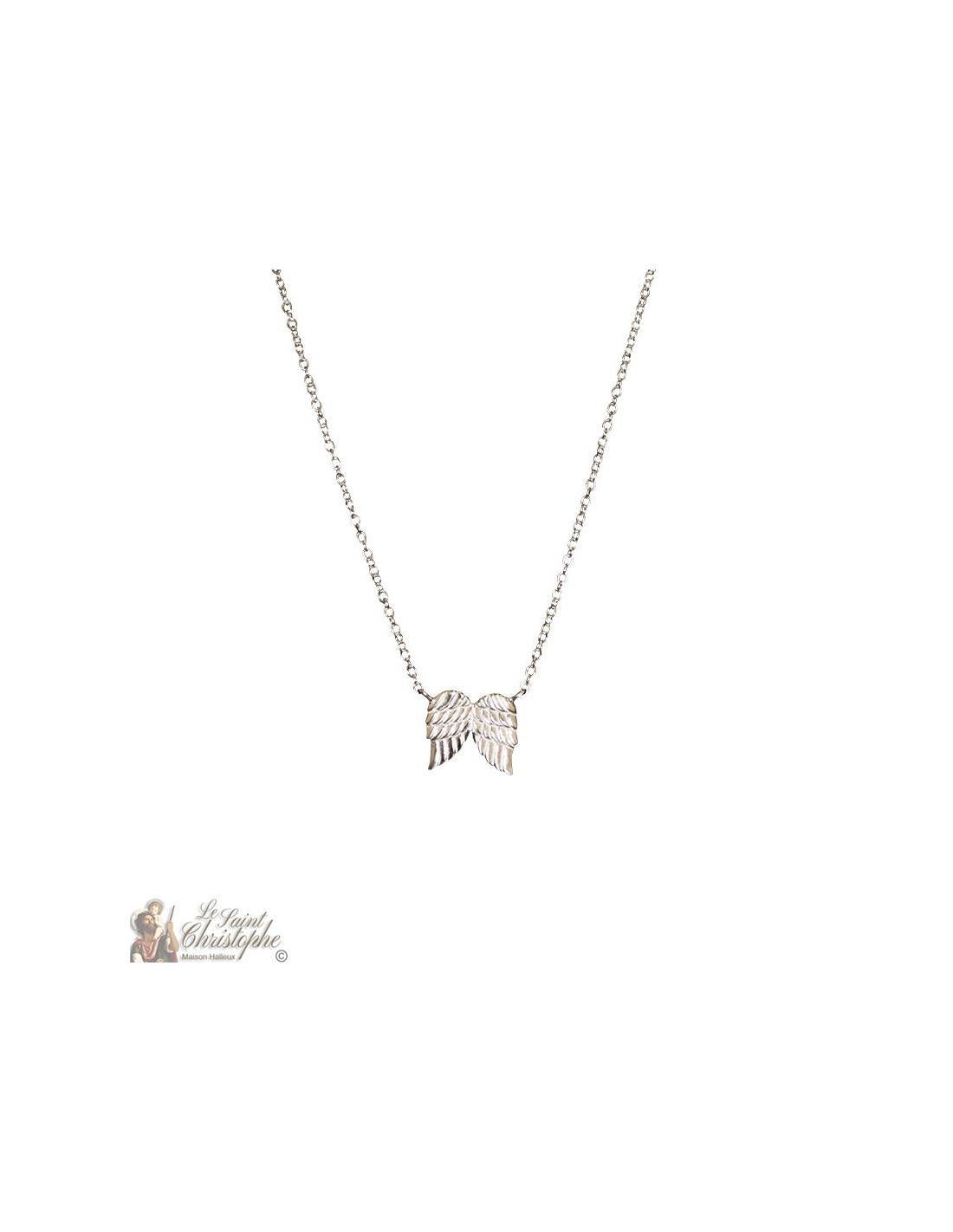 Fine mesh necklace, with 925 silver-plated finish and E-coat, with a delicate pair of angel wings as pendant.