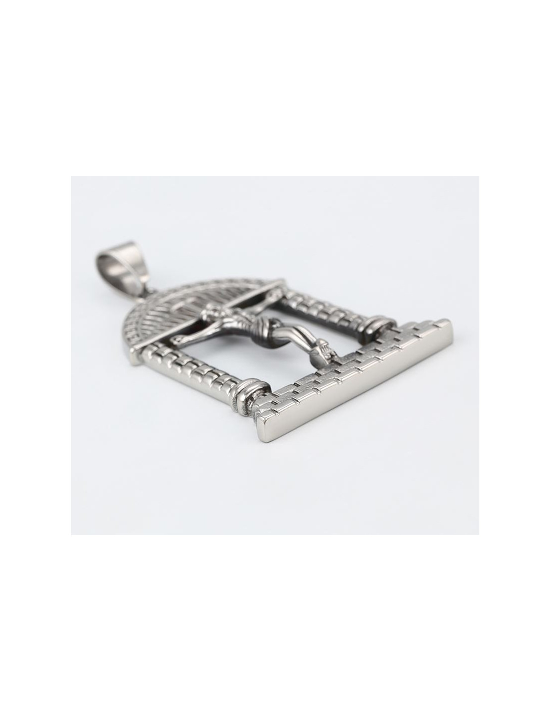 Large Saint Joseph Medal in stainless steel with 18K gold-plated chain - Diameter 44 mm