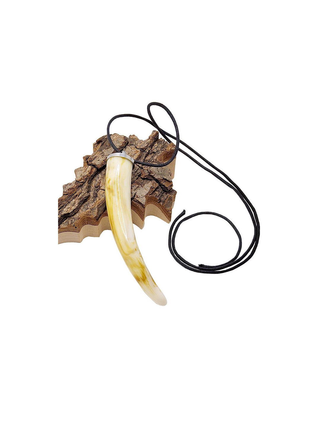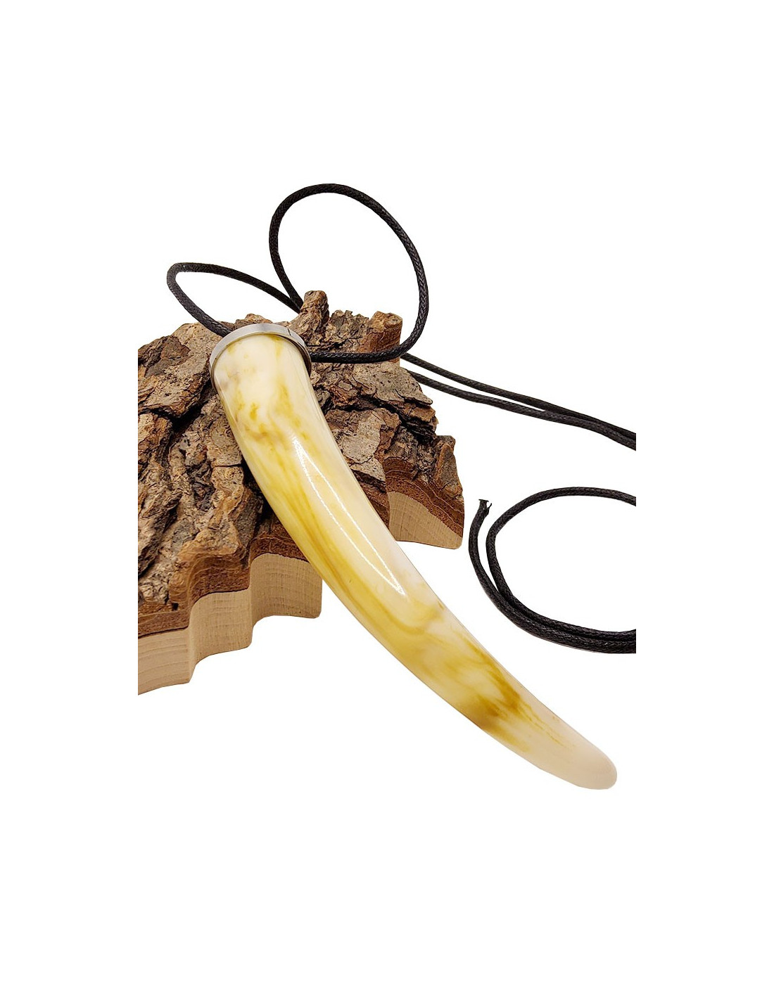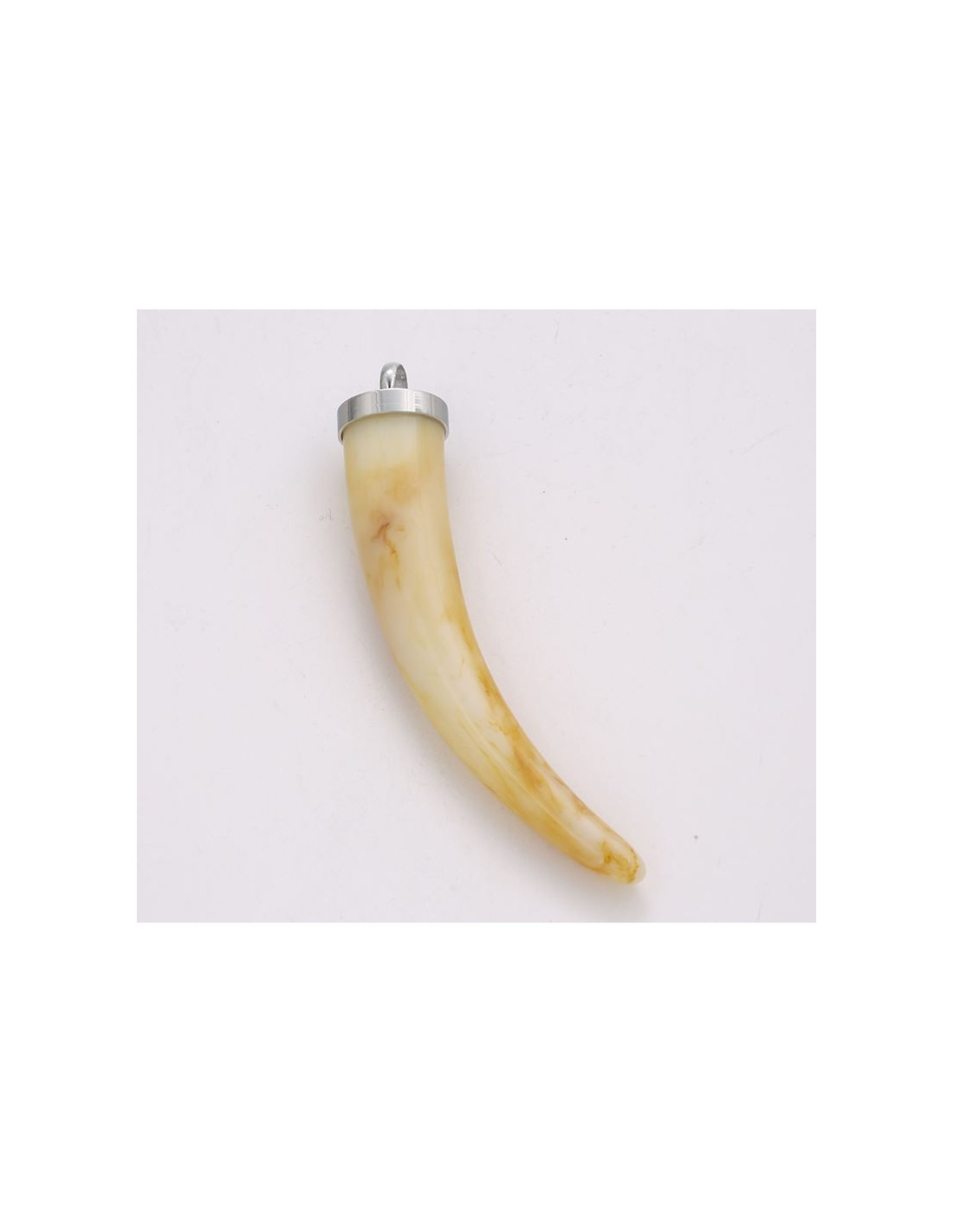 Large pendant in the shape of a cornucopia. The resin perfectly imitates natural horn. The clasp is made of stainless steel.